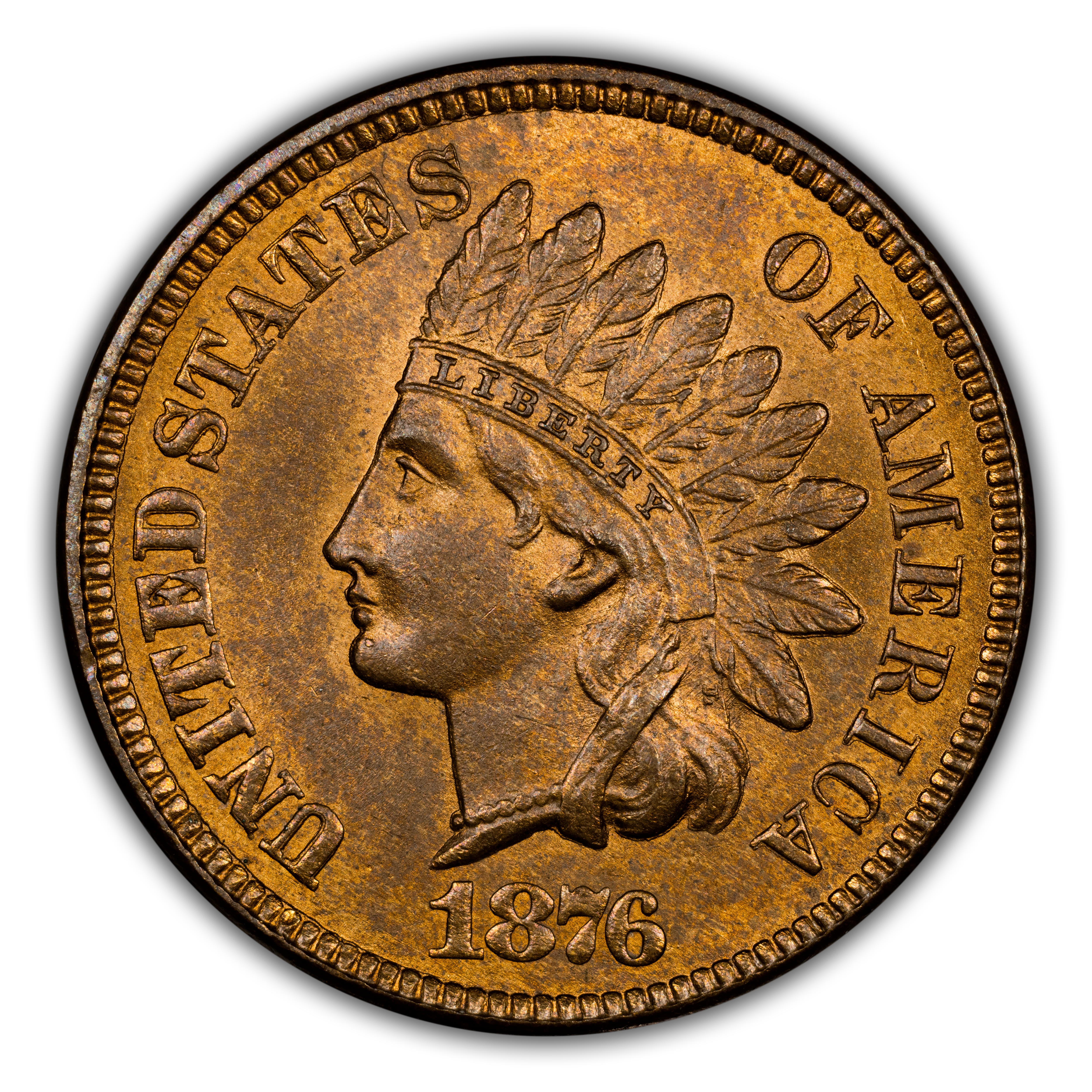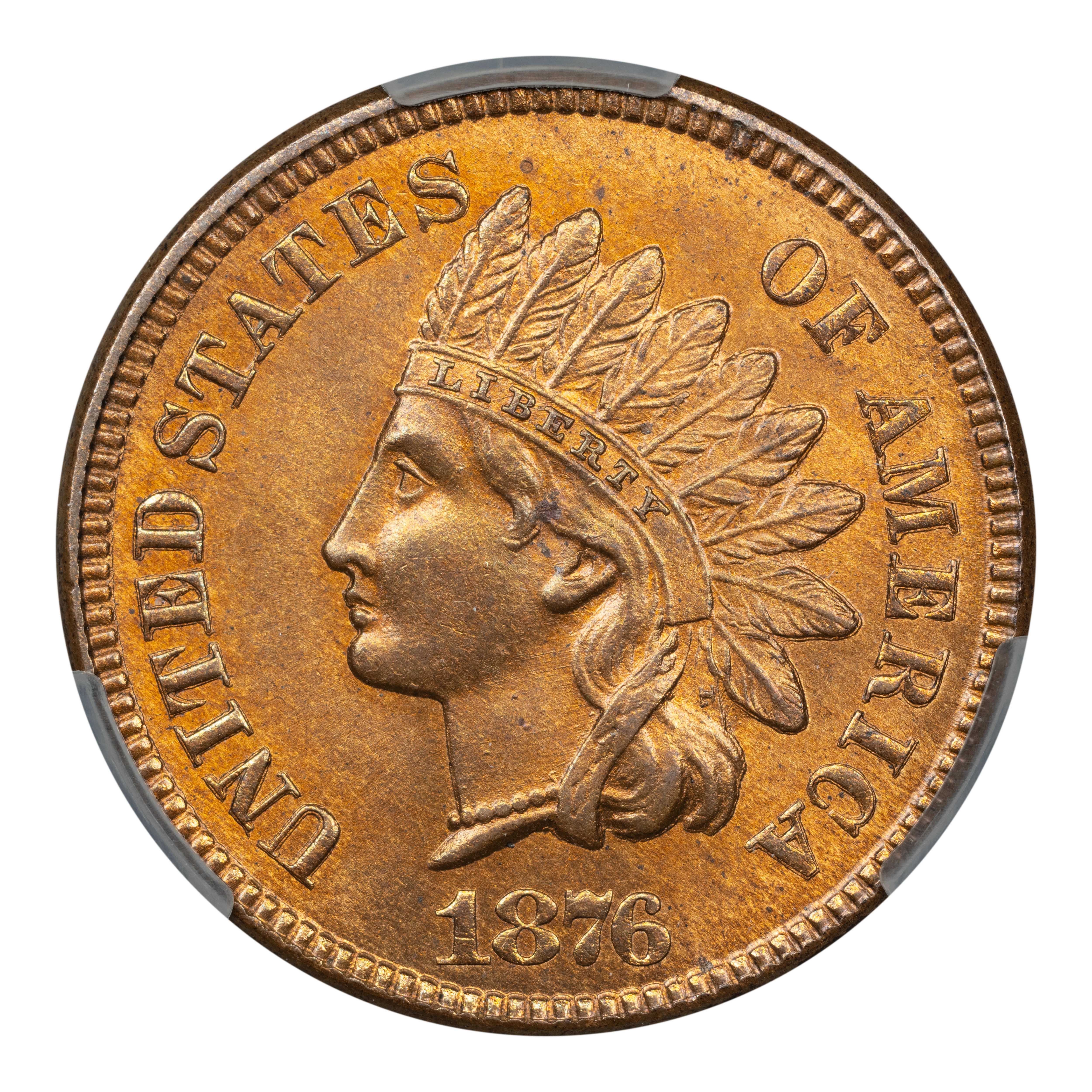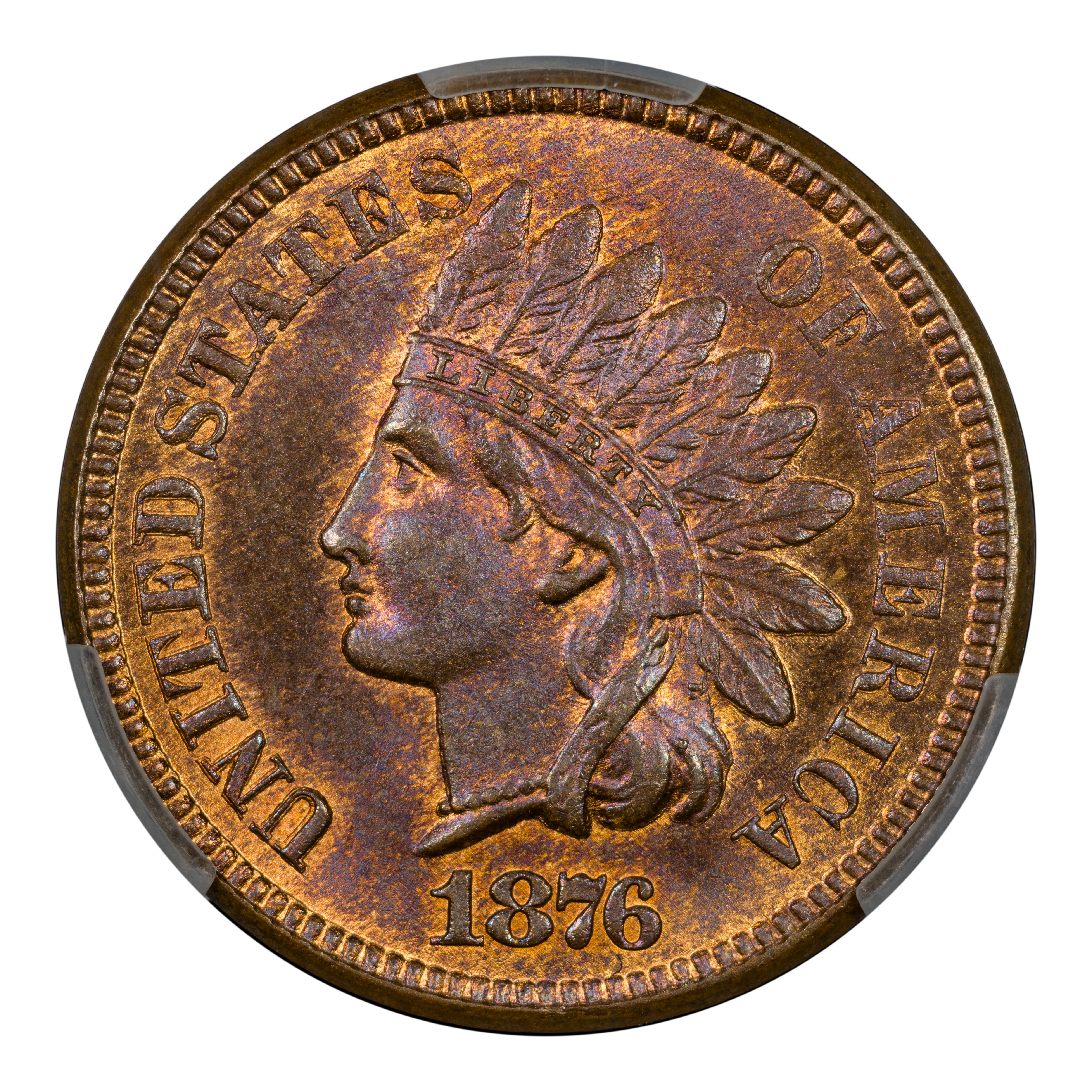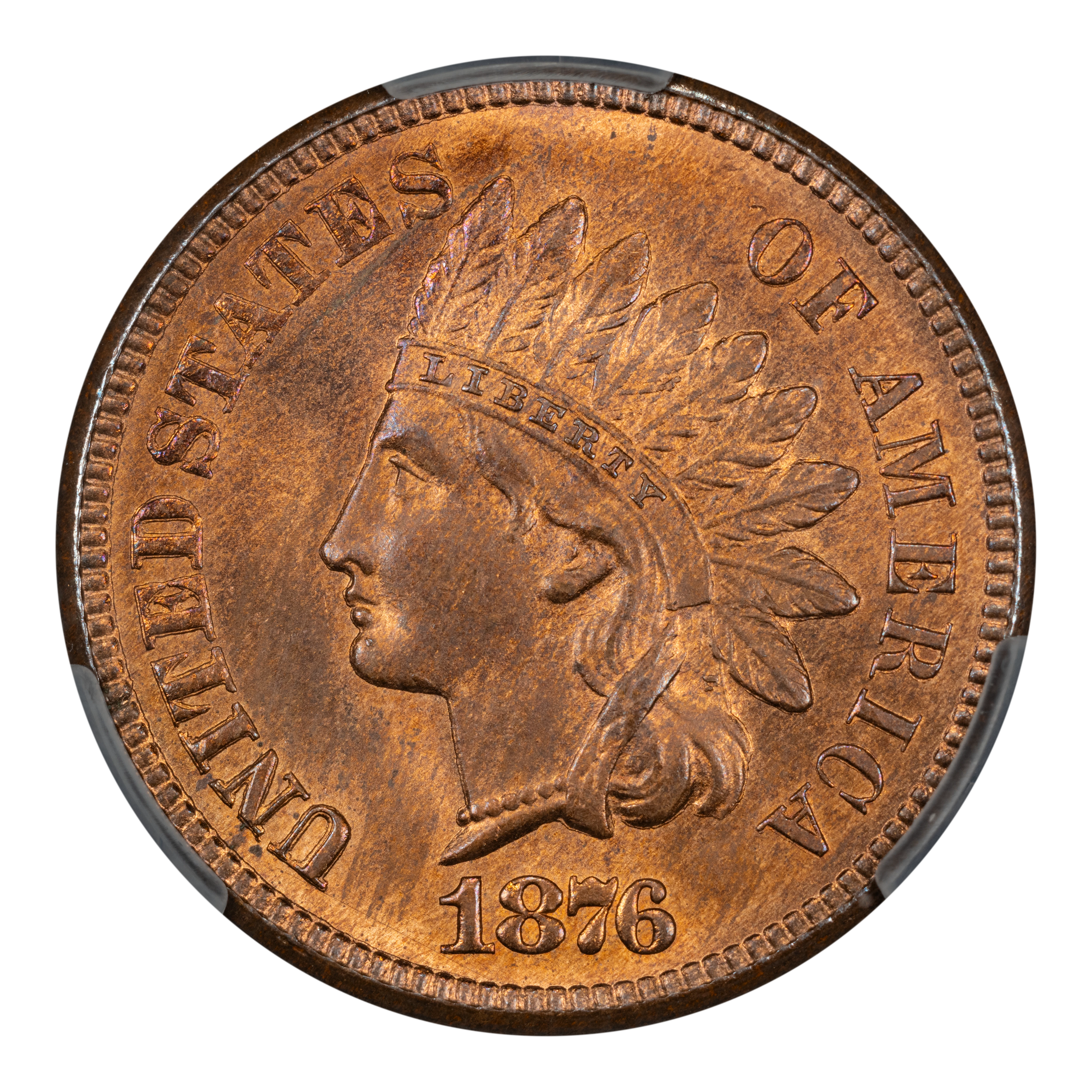 The 1876 is an average date (mintage and value) amongst this rare and important decade in the Indian Cent Series. While relatively common with brown color even in mint state, uncircualted red-brown are tough and and full-red gems are very diffiuclt to locate.