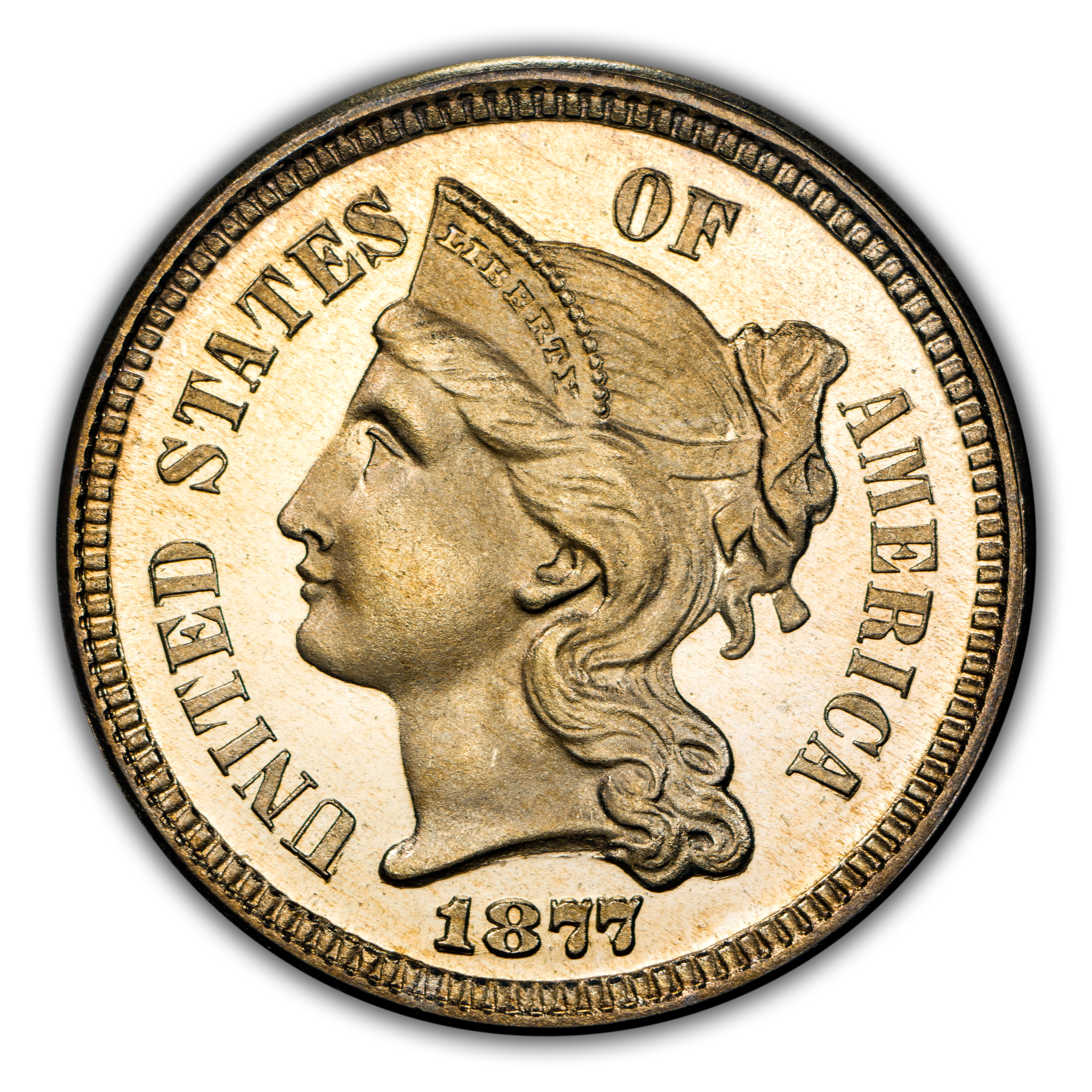 1877 3cN PCGS Proof 65 CAM - Key, Proof-Only Issue