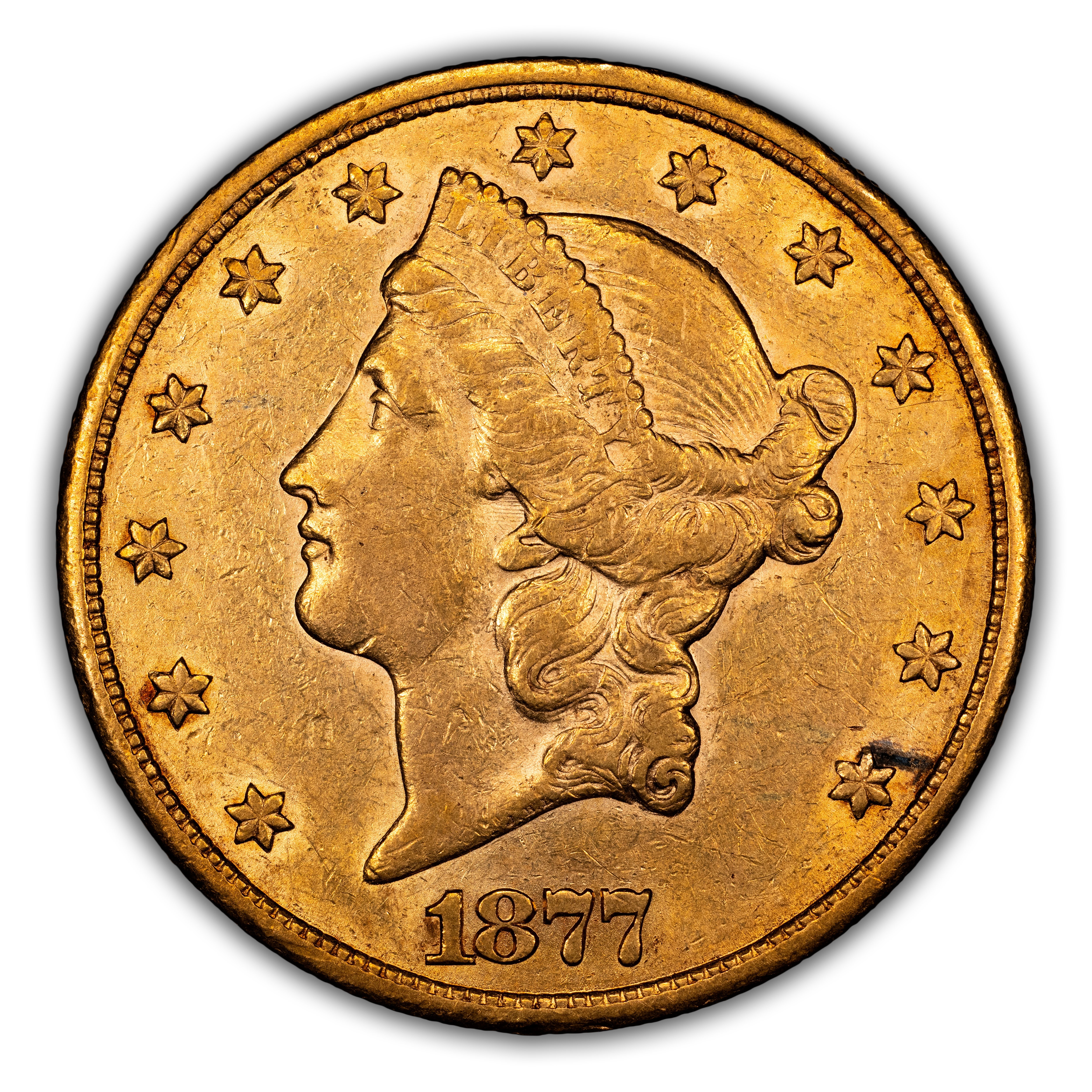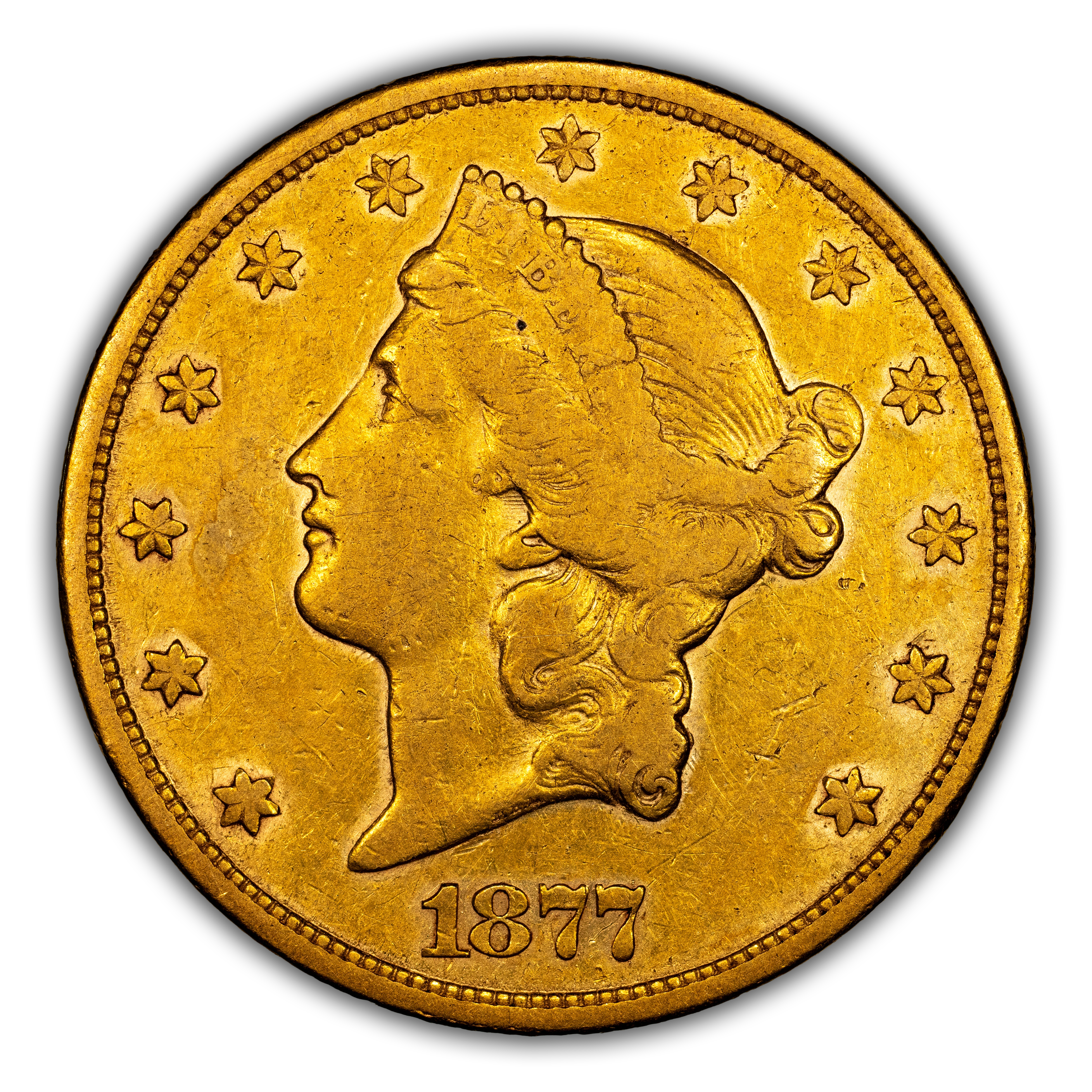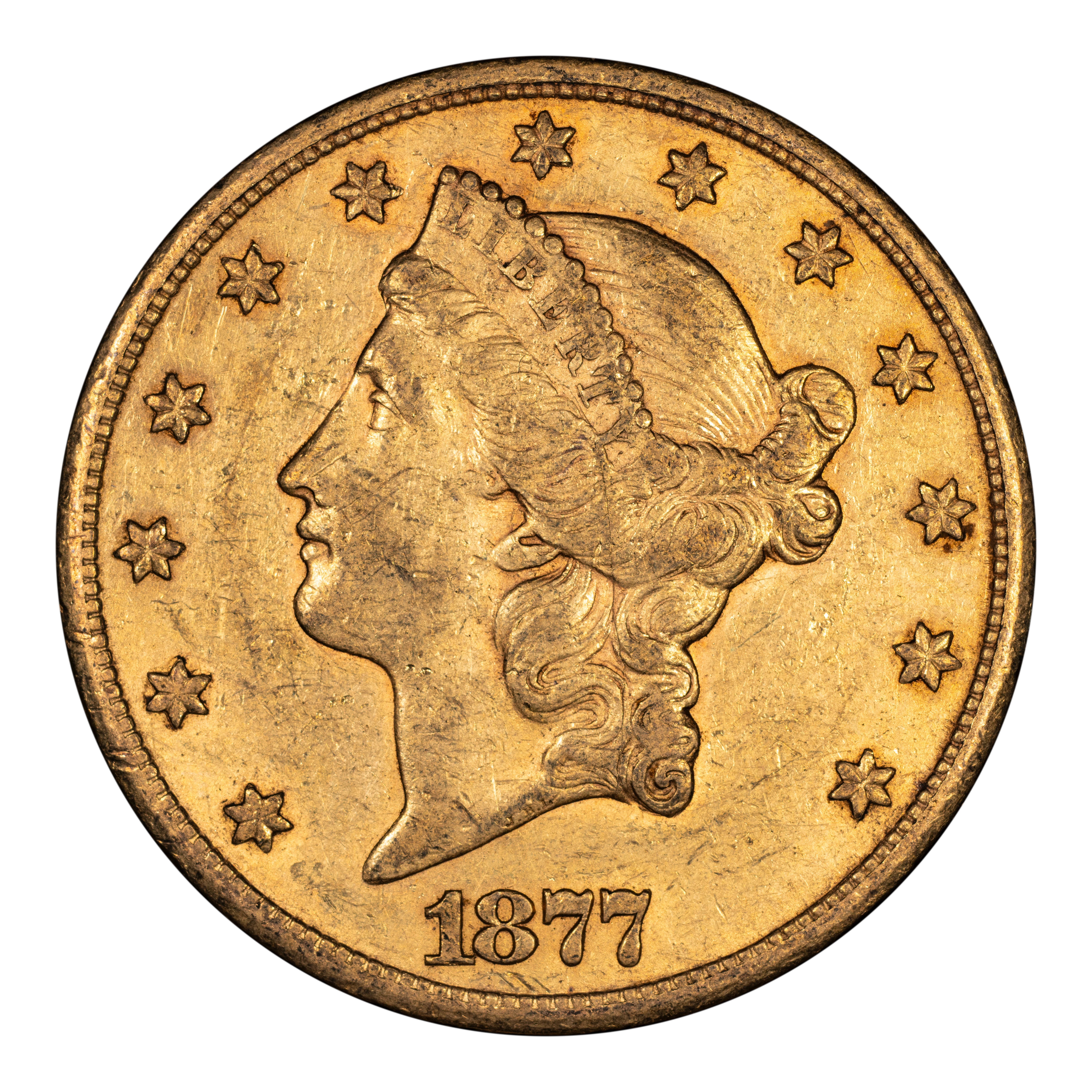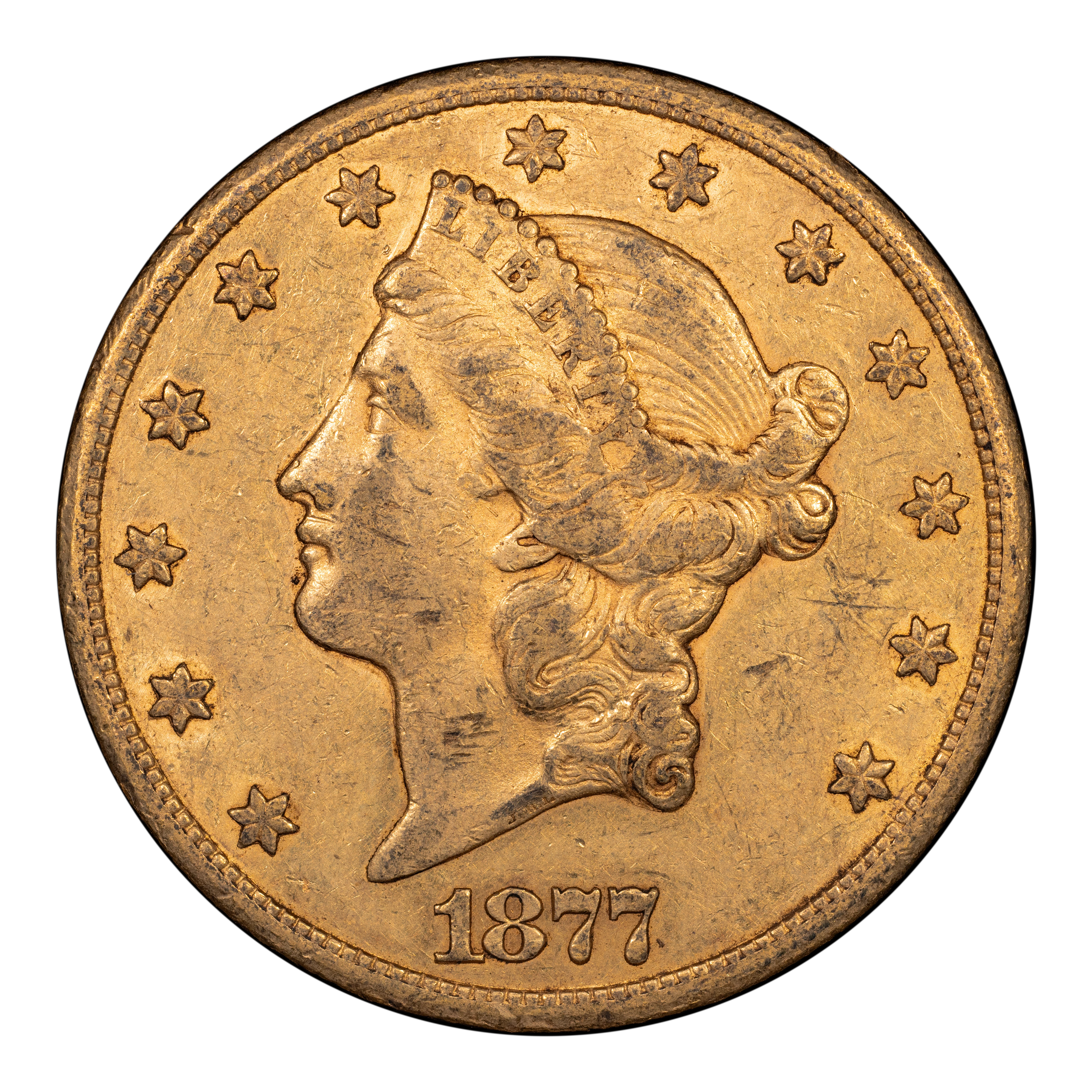 1877-CC $20 MS62 PCGS. Variety 2-C....