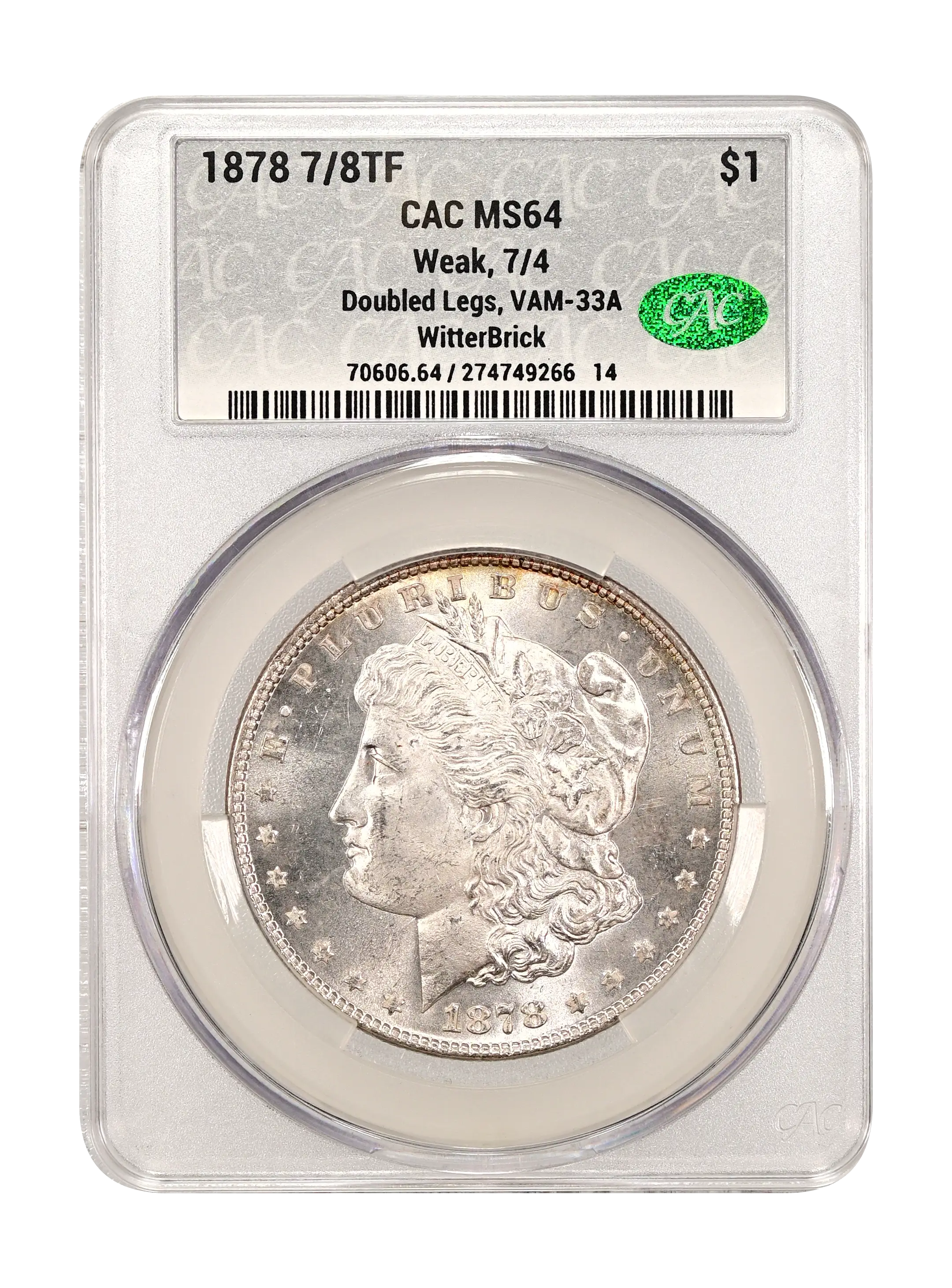 1878 7/8TF Weak, 7/4 $1 Doubled Legs, VAM-33A CAC MS64