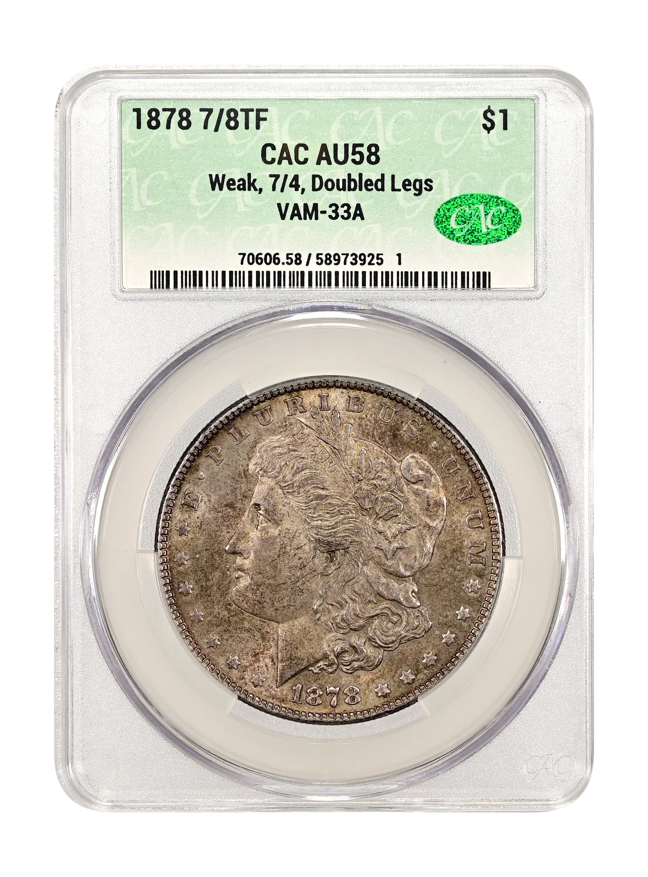 1878 7/8TF Weak, 7/4 $1 Doubled Legs, VAM-33A CAC AU58