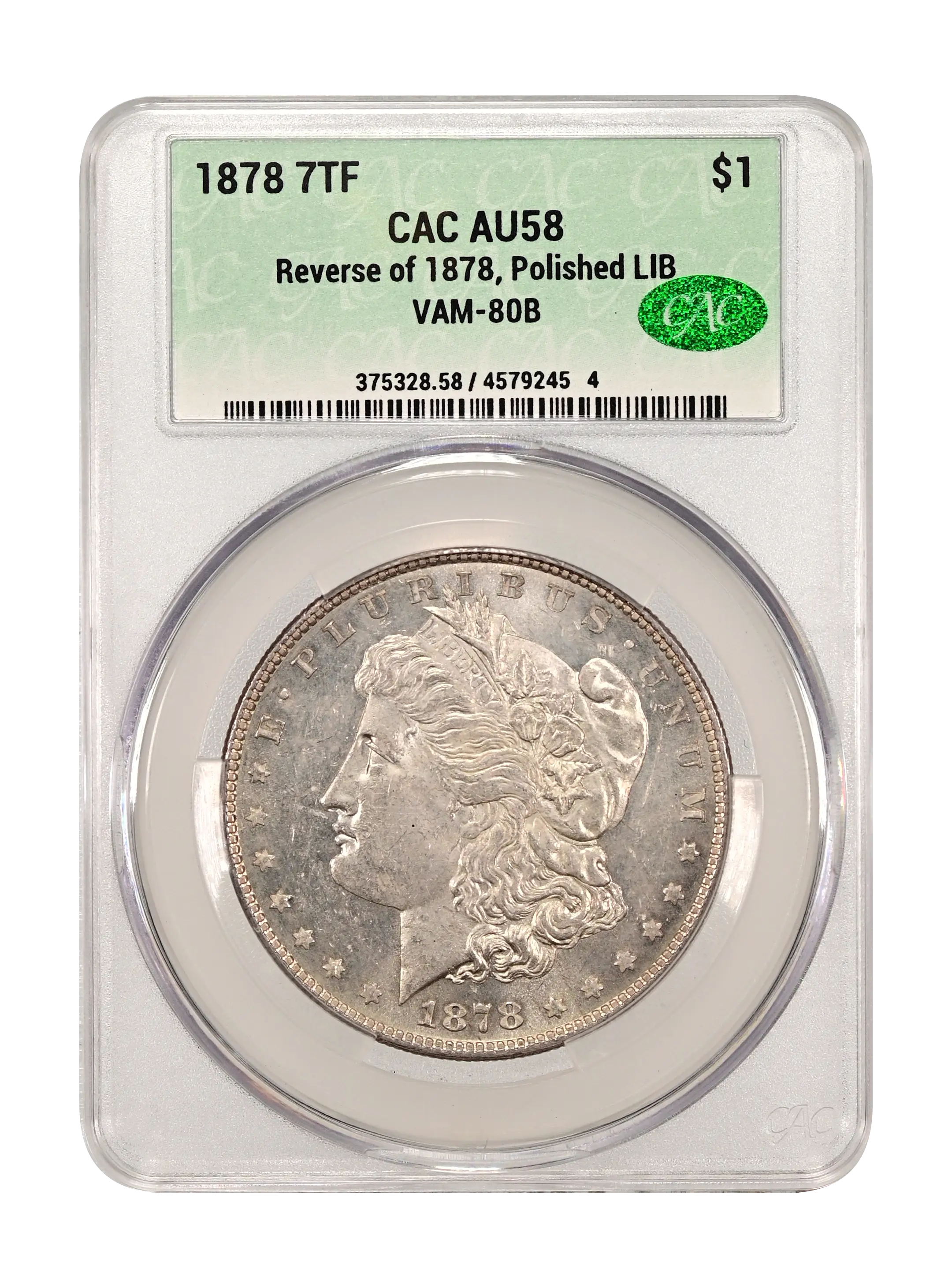 1878 7TF Reverse of 1878, Doubled LIBERTY $1 VAM-80B CAC AU58