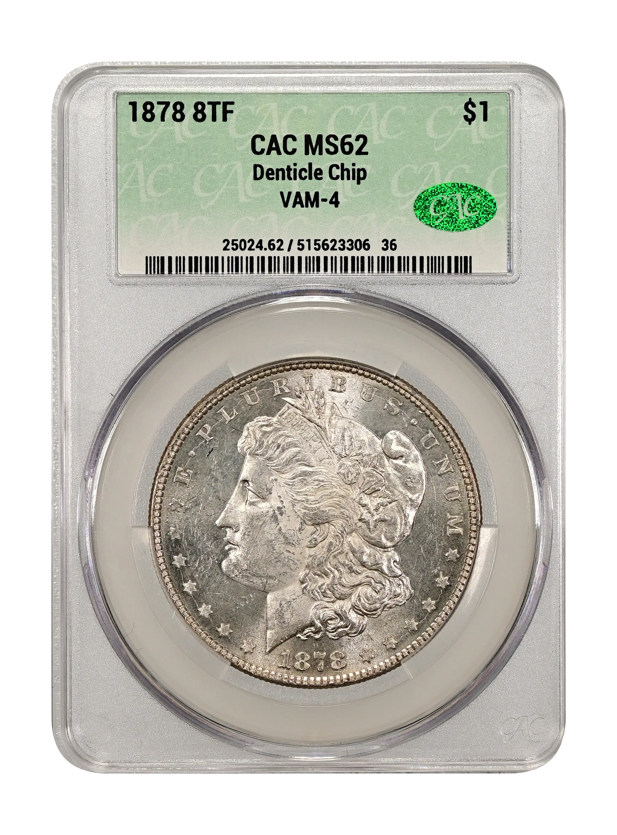 1878 8TF Denticle Chip $1 VAM-4 CAC MS62