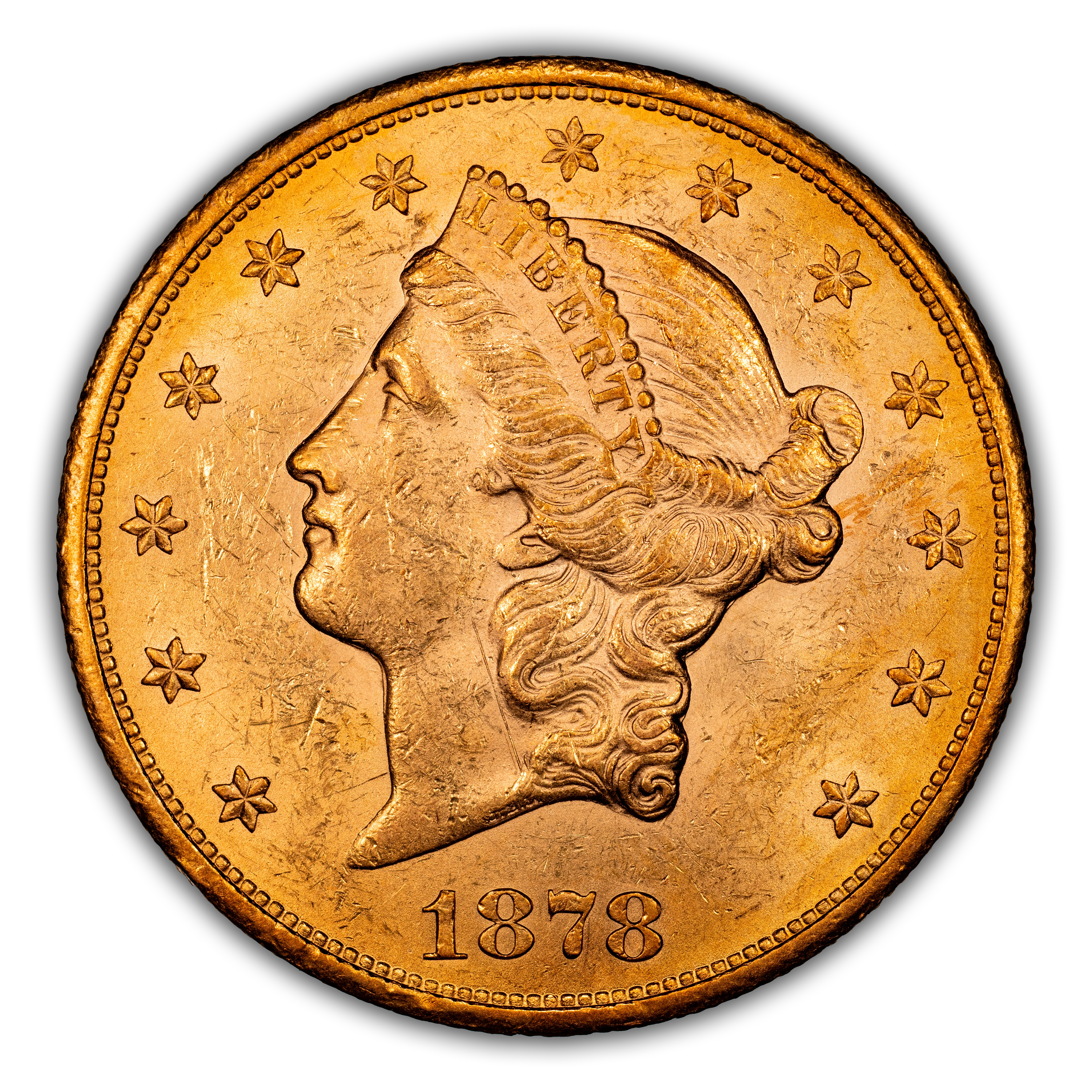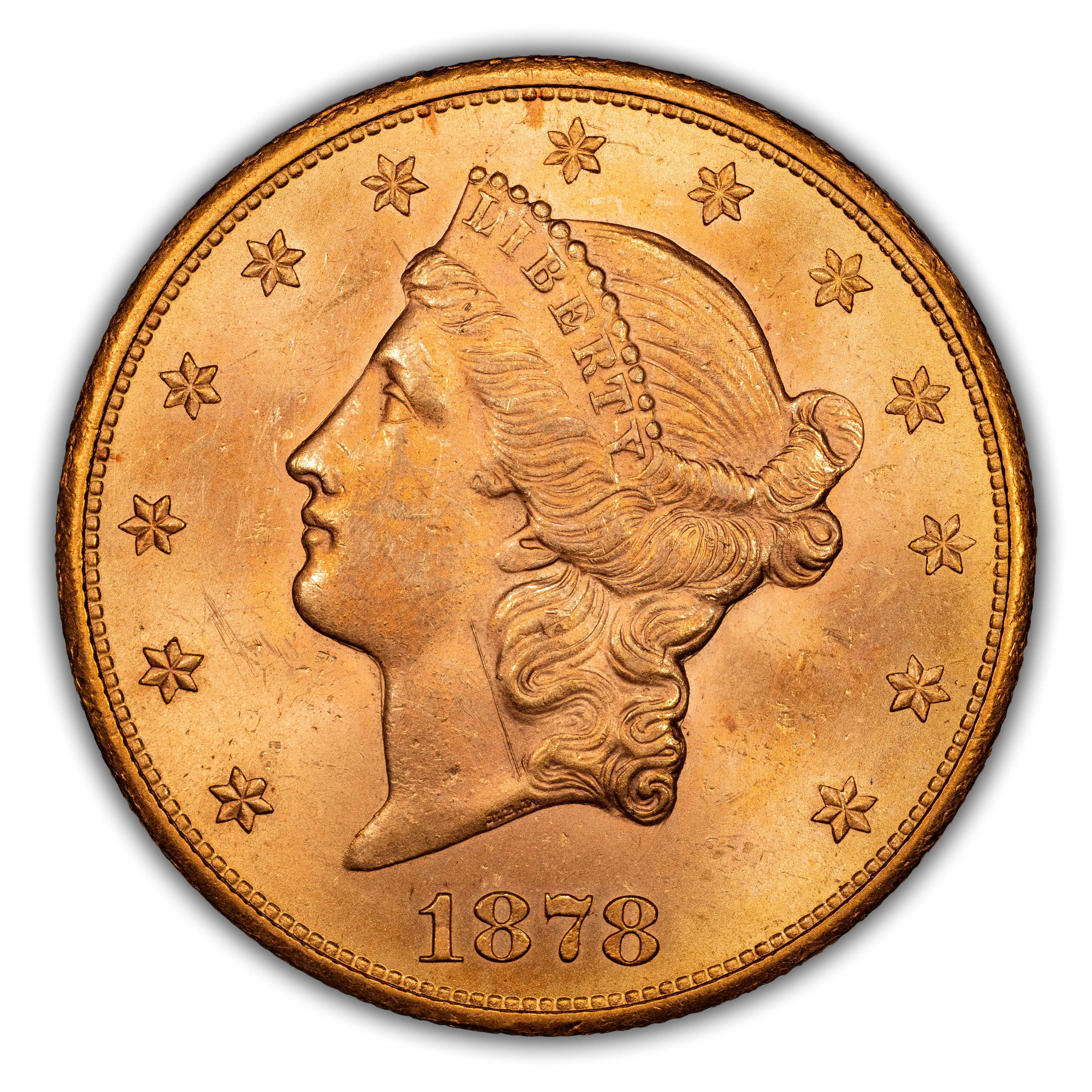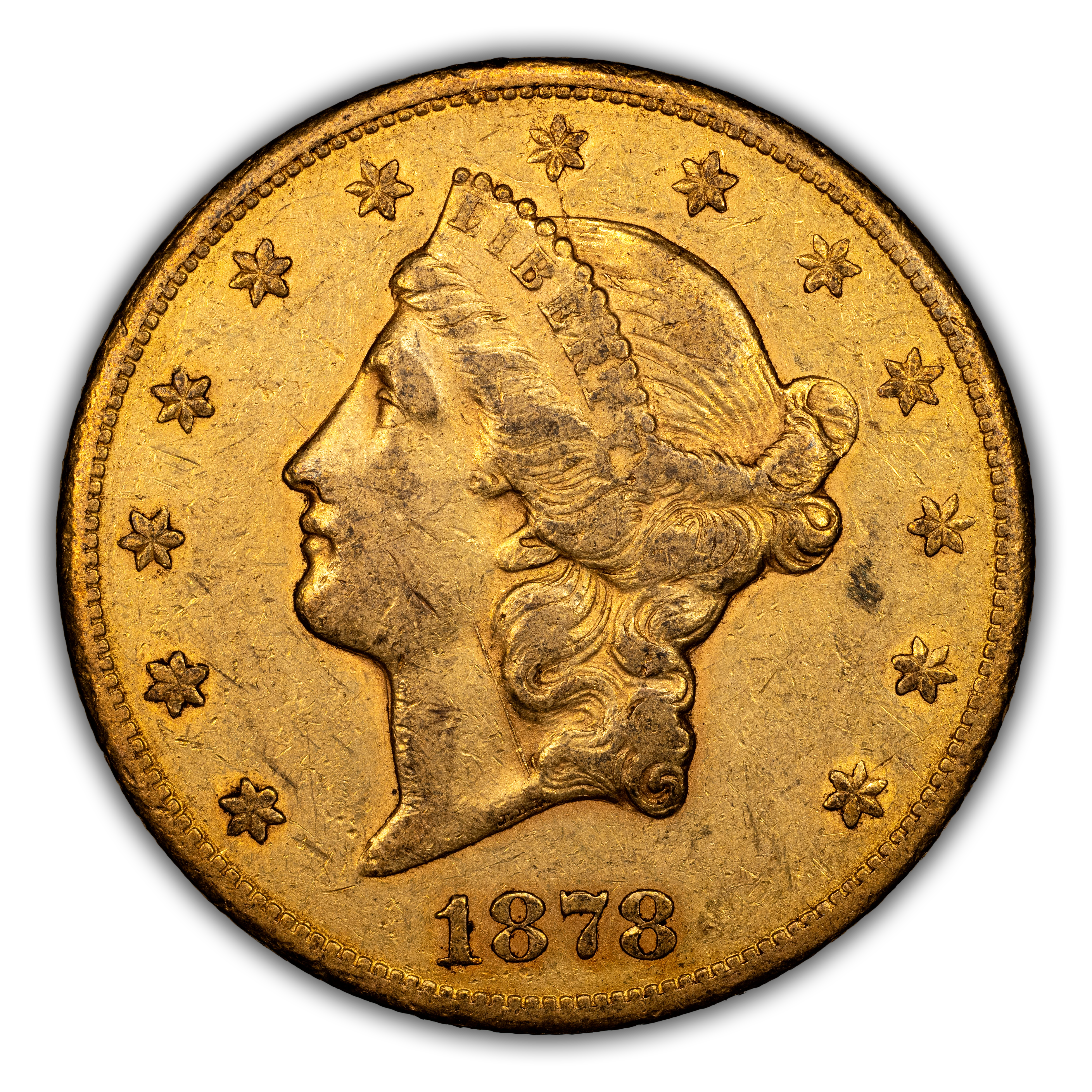 1878-CC $20 AU50 PCGS. Variety 1-A....