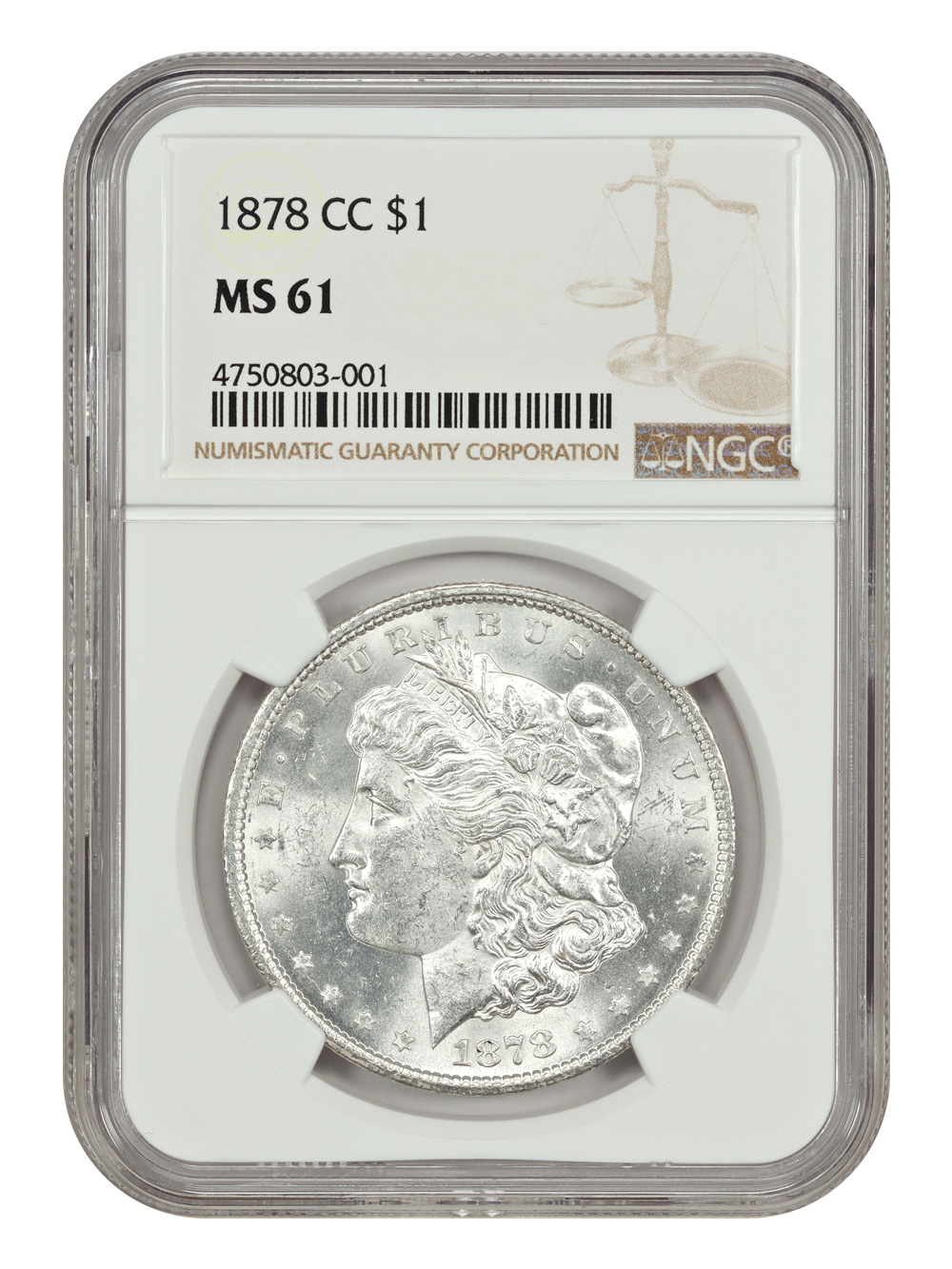 <B>1878-CC $1 MS64 PCGS. VAM-2A.</B></I> Housed in a Generation 1.2 "rattler" holder. CDN: $690 Whsle. Bid for NGC/PCGS MS64. Mintage ...