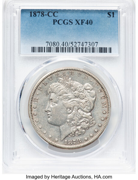 <B>1878-CC $1 XF45 PCGS.</B></I> CDN: $220 Whsle. Bid for NGC/PCGS XF45. Mintage 2,212,000. ...
