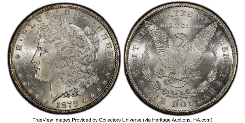 This Morgan dollar is a popular date as both a first-year issue and more particularly a first-year Morgan from the Carson City Mint. While scarce in comparison to many other Morgan dollars from other mints, the 1878-CC is common enough to satisfy collector demand and can be found with relative easy in circulated and uncirculated grades through the mid-range Gem levels. There is a huge jump in price from MS66, in which the coin has many certified examples, to MS67, where only a relative handful are known. PL and DMPL examples are available through roughly MS64 and become significantly challenging in grades above that.