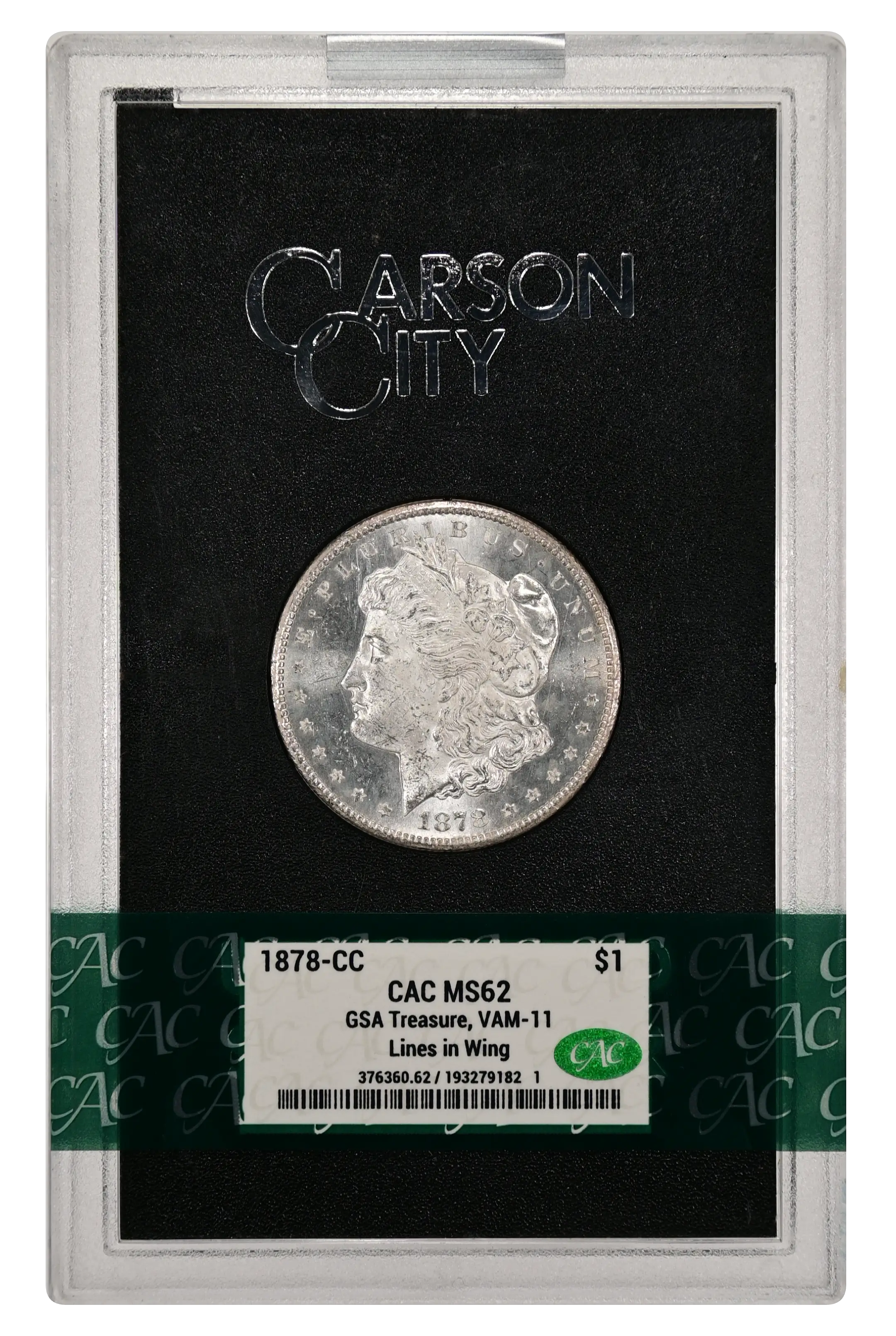 1878-CC GSA Treasure, VAM-11 $1 Lines in Wing CAC MS62
