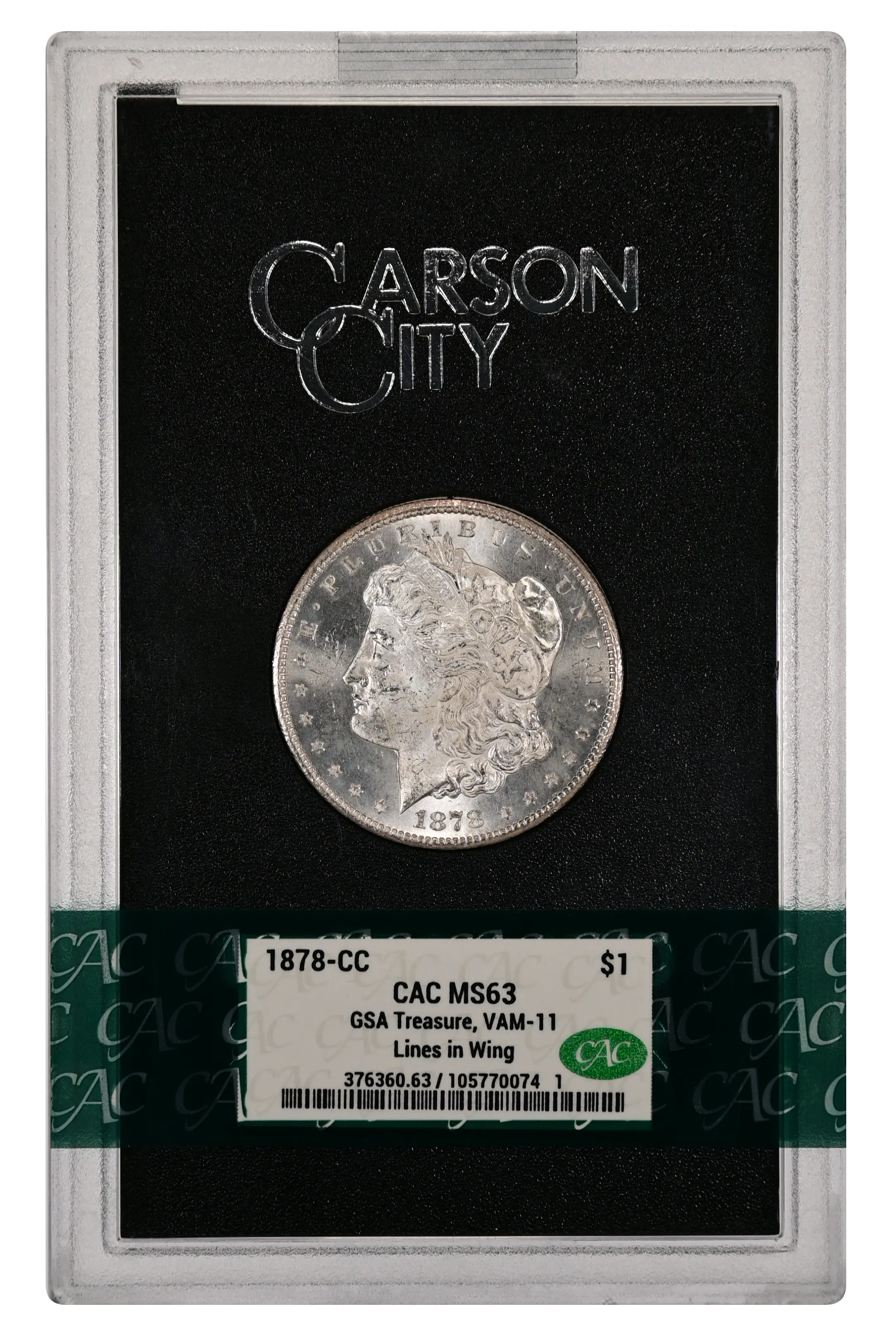 1878-CC GSA Treasure, VAM-11 $1 Lines in Wing CAC MS63