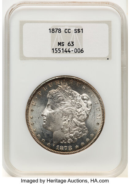 Top 100 VAM: 1878-CC $1 PCGS MS64 (VAM 11 Lines in Wing)