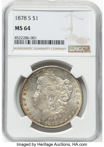 This is a common date through Gem levels and is known as high as at least MS68, though at that lofty level they are quite rare. Overall, the 1878-S has always been regarded as one of the more widely available pieces and has been sold in bag quantities through into at least the mid 1960s. PLs and DMPLs are understandably scarcer but are frequently encountered through MS65 levels with a few rare pieces touching as high as MS68.