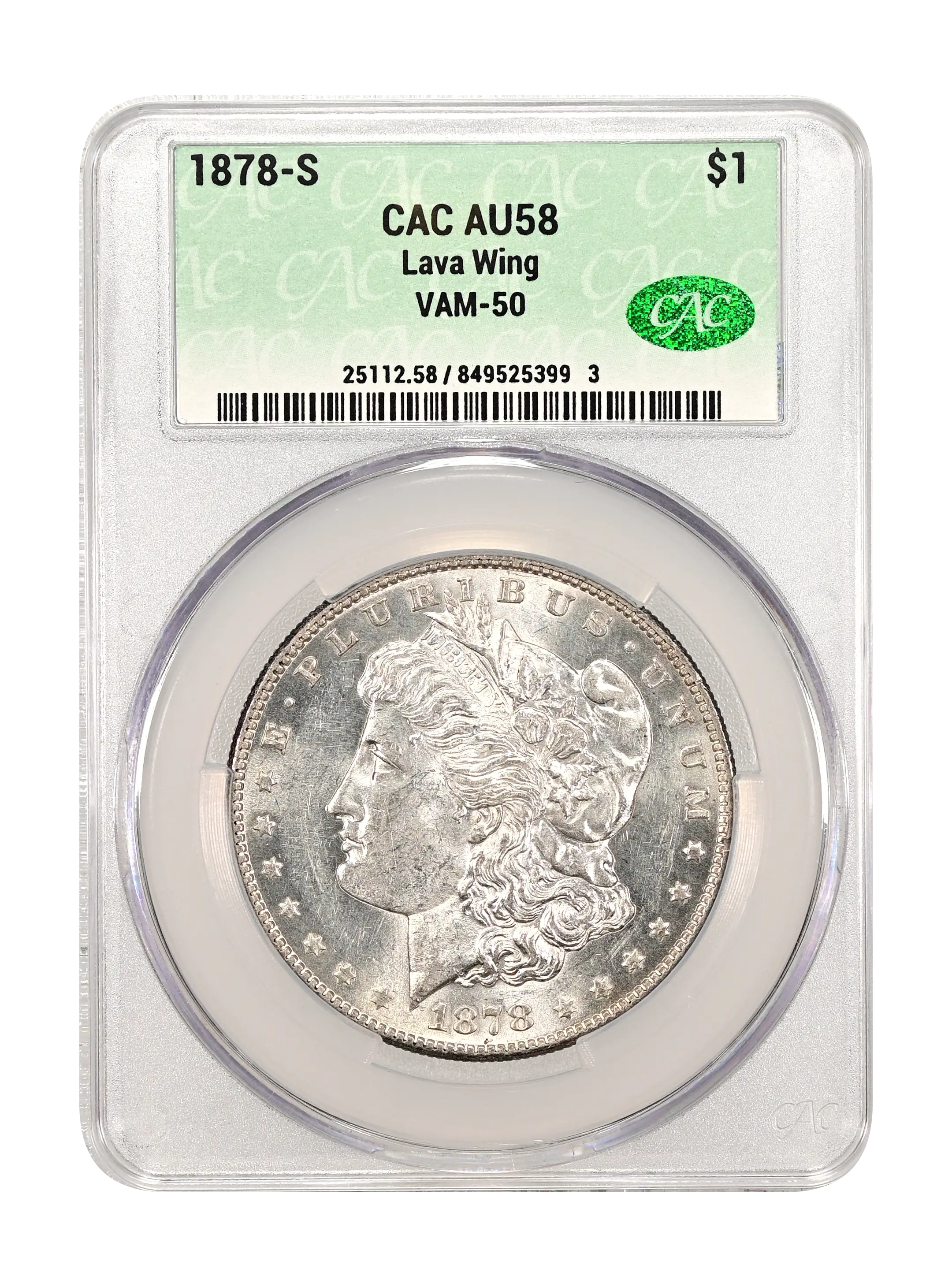 1878-S Lava Wing $1 VAM-50 CAC AU58