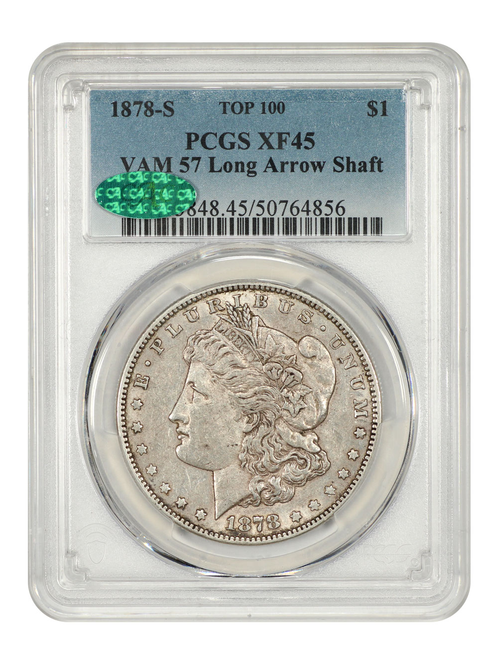 Top 100 VAM: 1878-S $1 PCGS/CAC AU58 (VAM-57, Long Arrow Shaft)