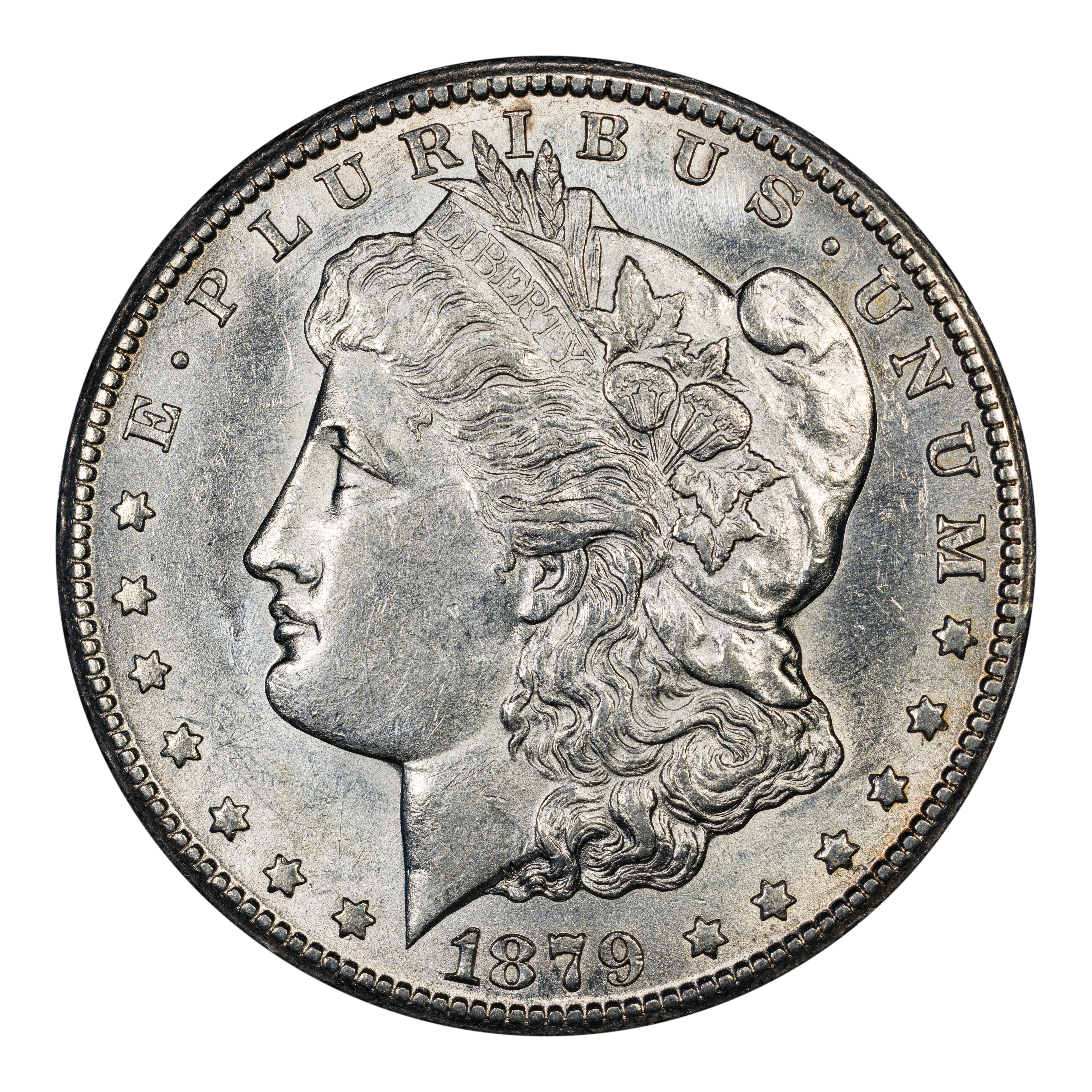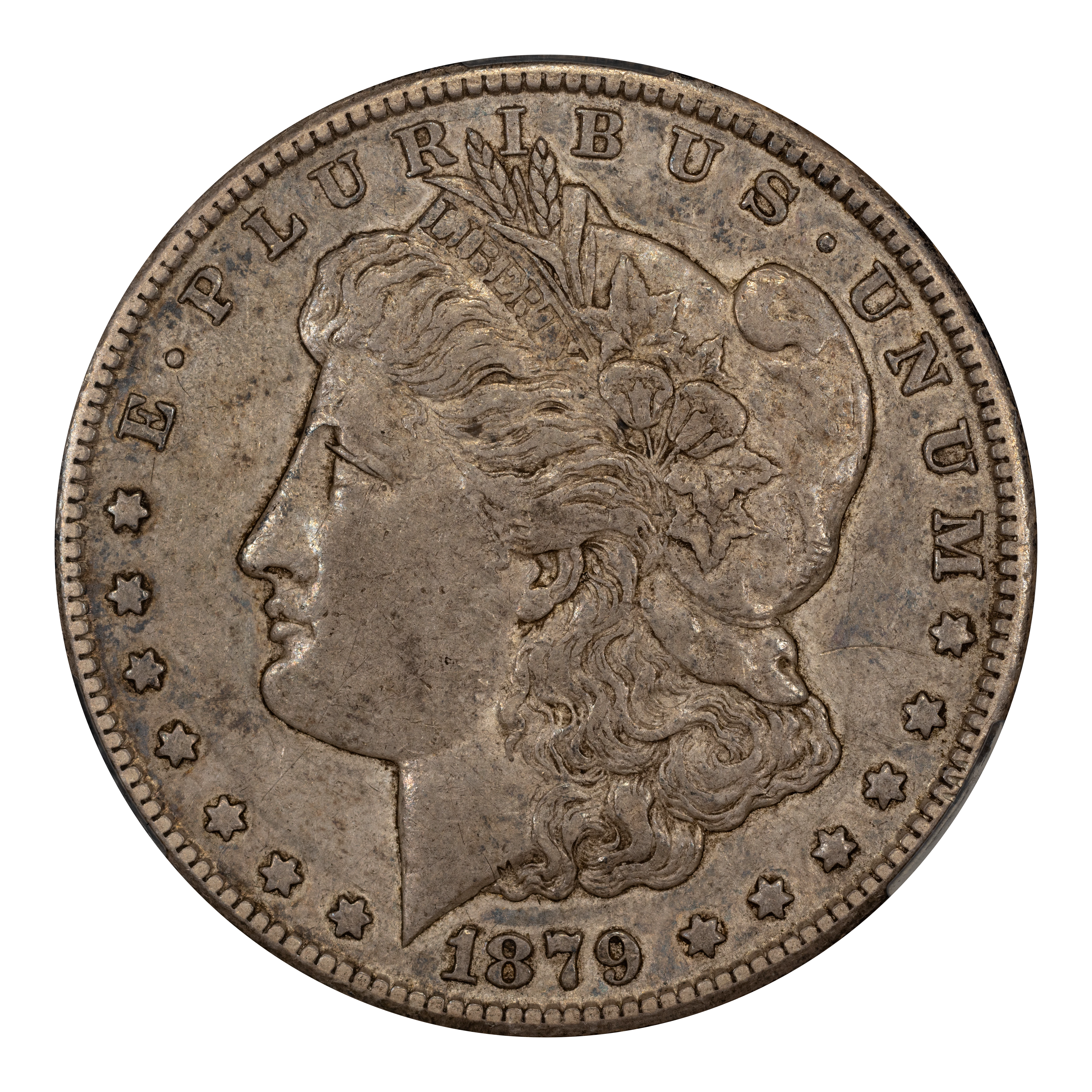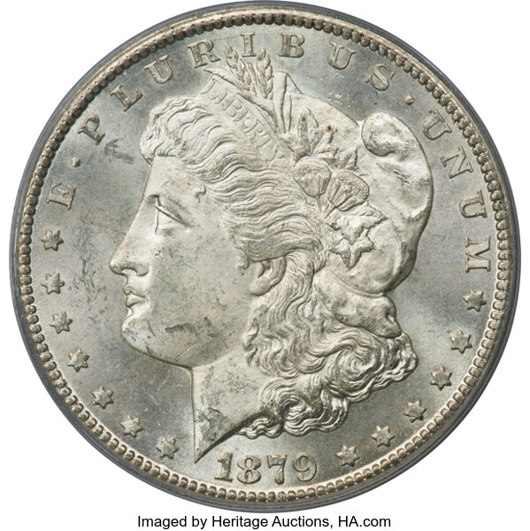 There are two types of 1879-CC Morgan dollars -- those with a normal CC and examples bearing the so-called Capped Die, or Capped CC. The Capped Die showcases a rusted CC mintmark and is about twice as scarce as the regular 1879-CC Morgan, itself a highly scarce coin in all grades. The 1879-CC Capped Die is extremely scarce in even the lower MS grades and esoteric in the Gem levels, with only a handful of PLs in that grade range and virtually no DMPLs.