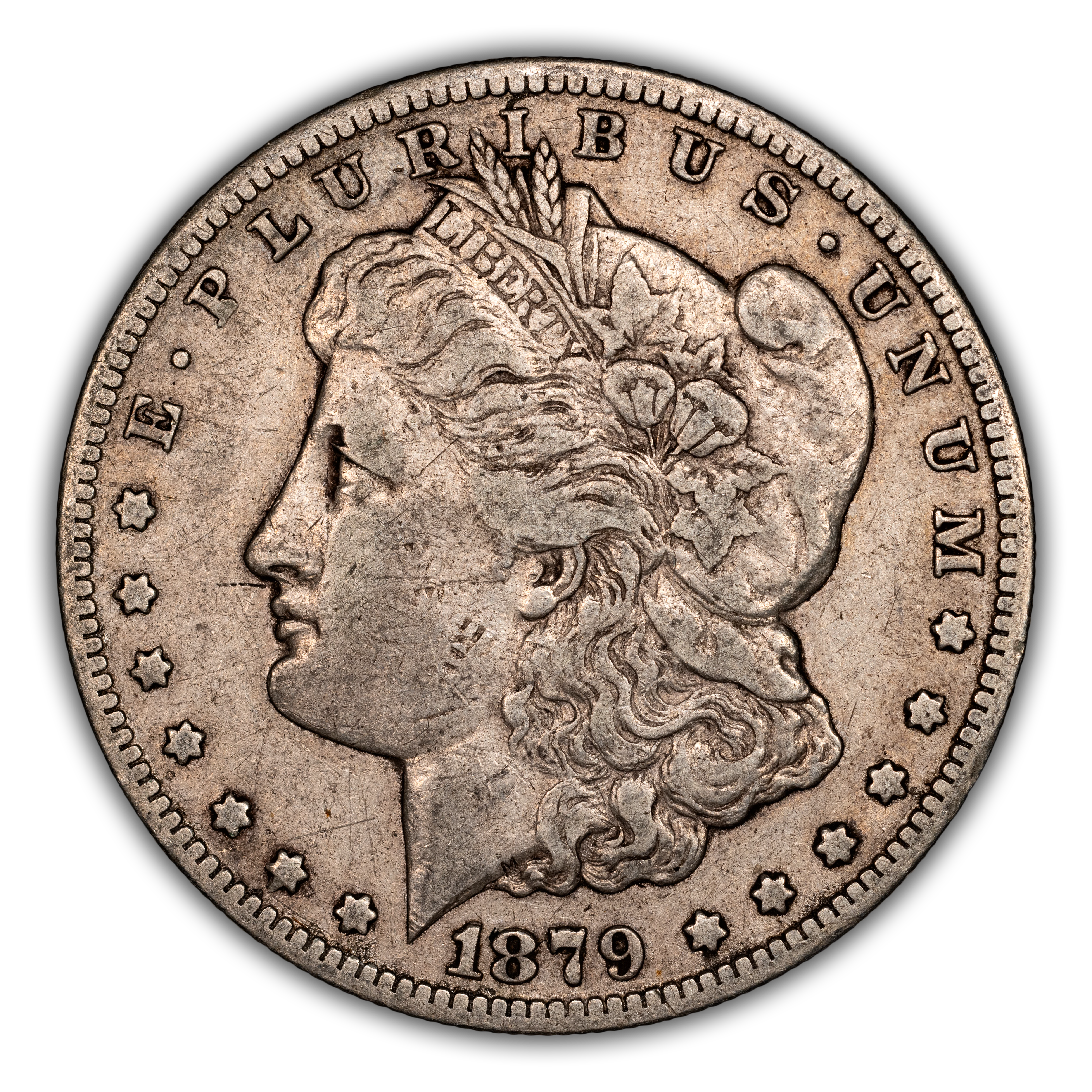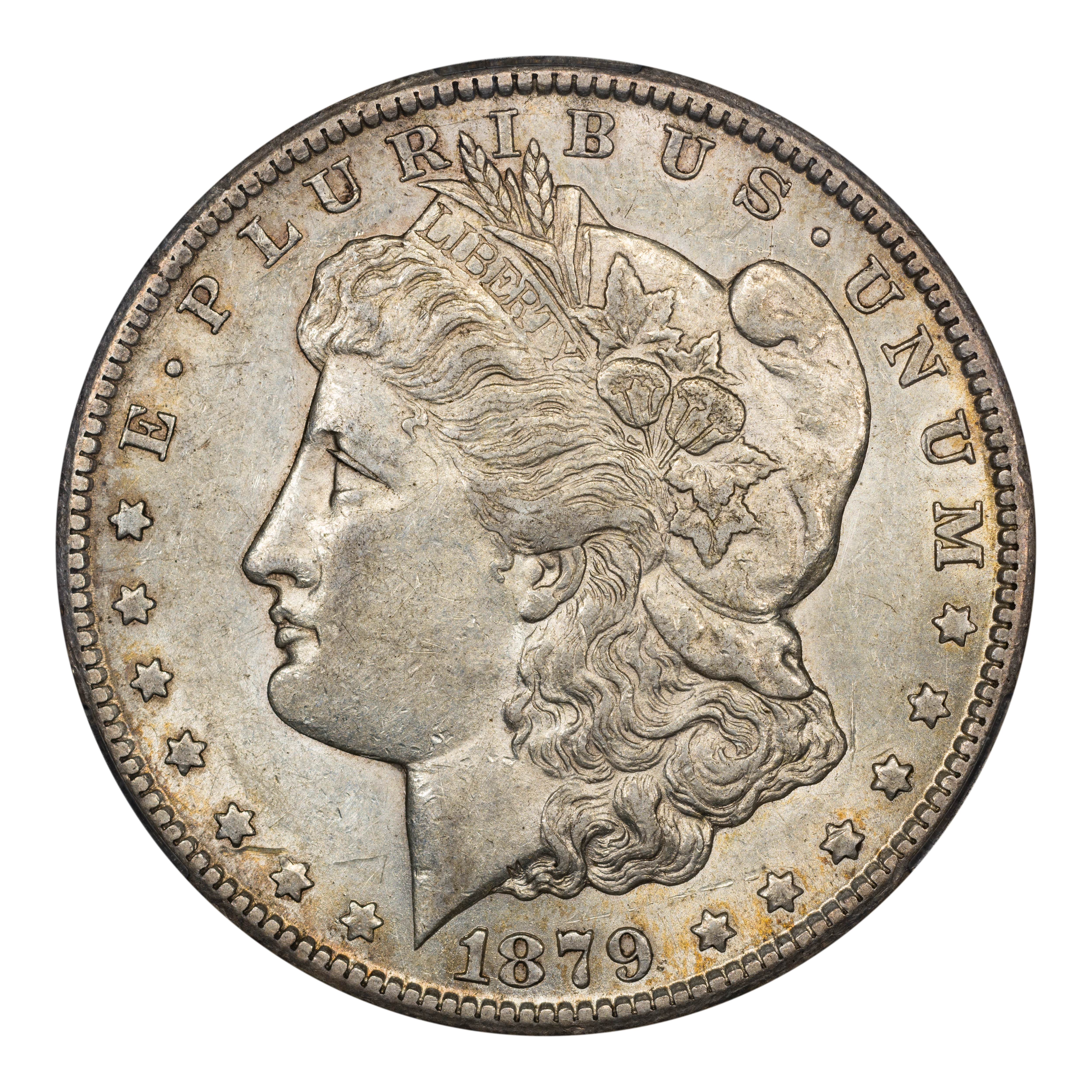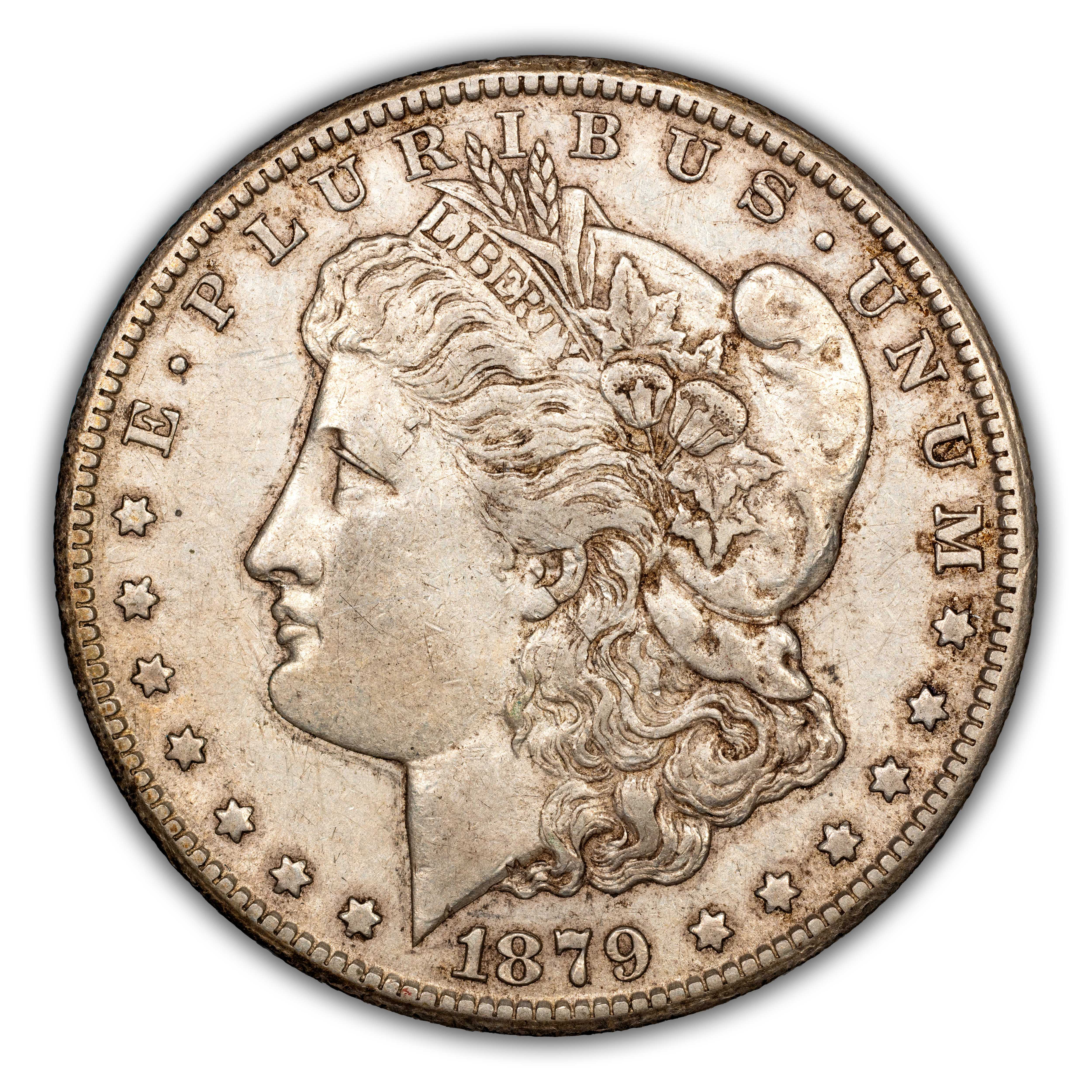 There are two types of 1879-CC Morgan dollars -- those with a normal CC and examples bearing the so-called Capped Die, or Capped CC. The Capped Die showcases a rusted CC mintmark and is about twice as scarce as the regular 1879-CC Morgan, itself a highly scarce coin in all grades. The 1879-CC Capped Die is extremely scarce in even the lower MS grades and esoteric in the Gem levels, with only a handful of PLs in that grade range and virtually no DMPLs.