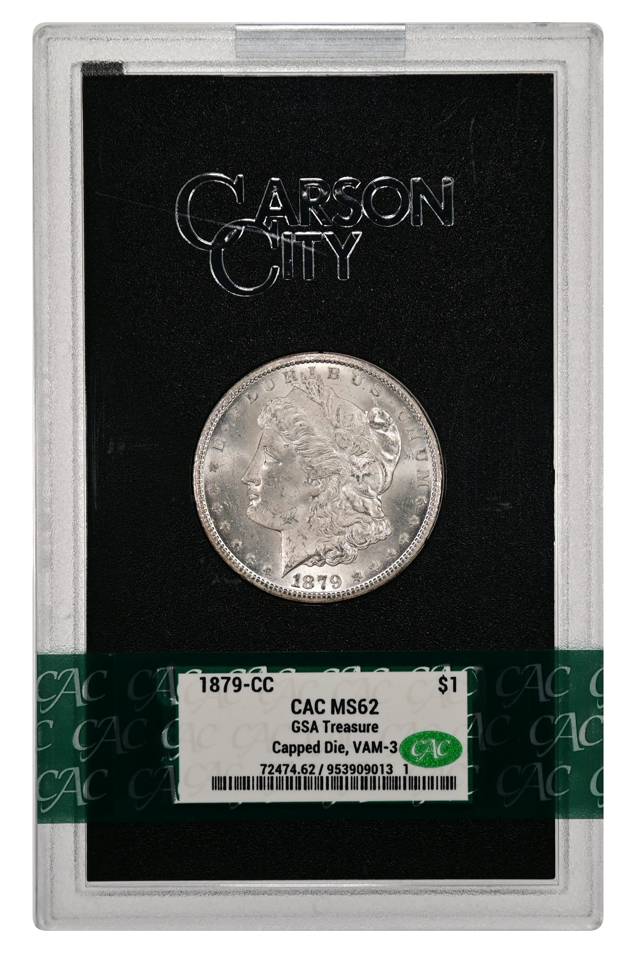 1879-CC $1 Capped Die, VAM-3, GSA, MS63+ NGC. CAC....