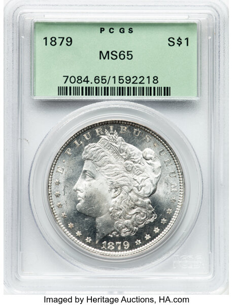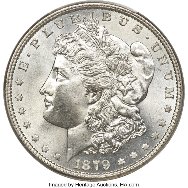 A common coin that is widely available through mid-range Gem levels, the 1879-S Morgan dollar is frequently encountered in most of the active grade points, though is challenging in MS67 or better. PLs and DMPLs are significantly scarcer than regular MS examples. The strike on this coin is typically strong, and many specimens exhibit blast-white surfaces.