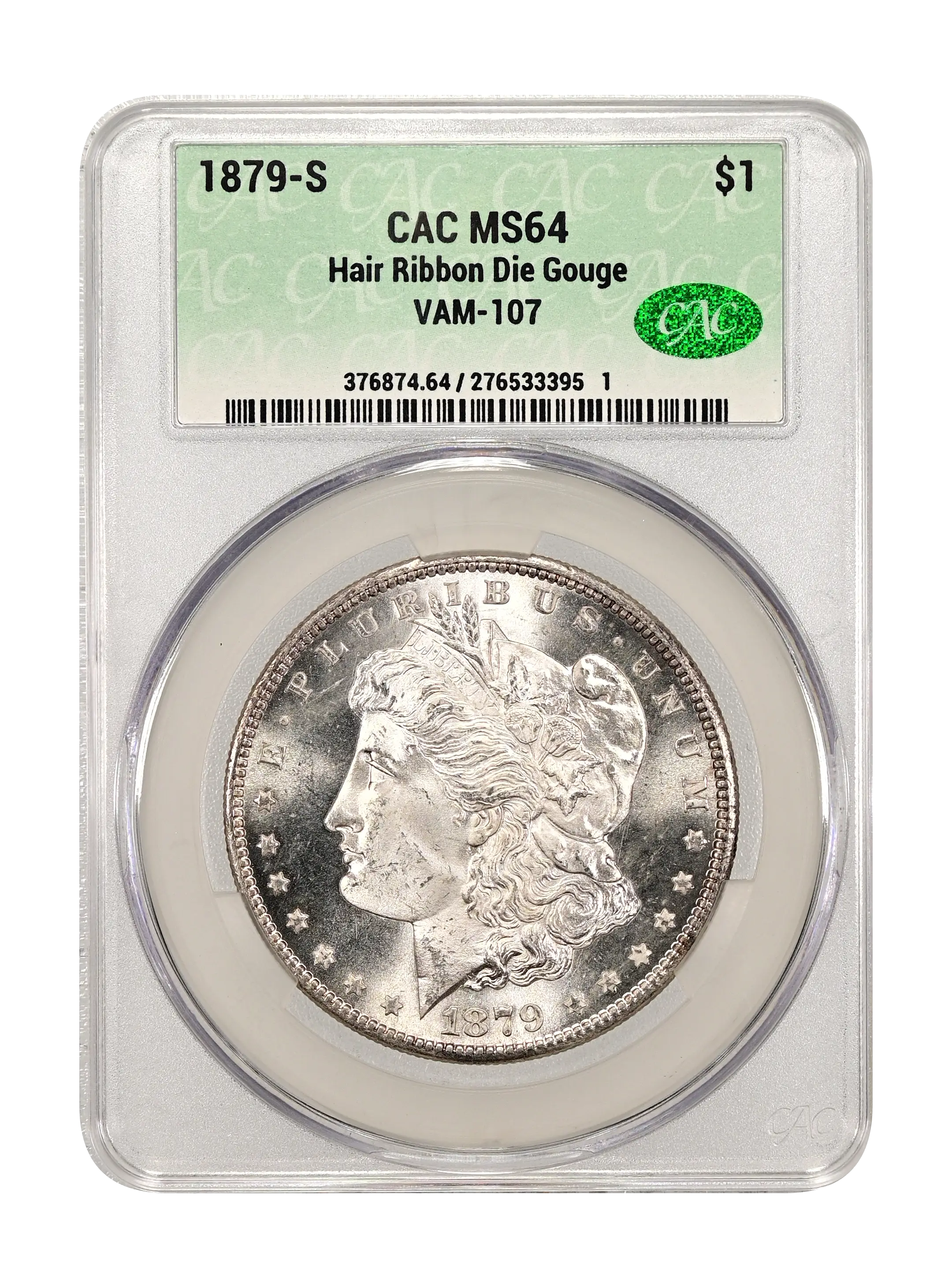 1879-S Hair Ribbon Die Gouge $1 VAM-107 CAC MS64