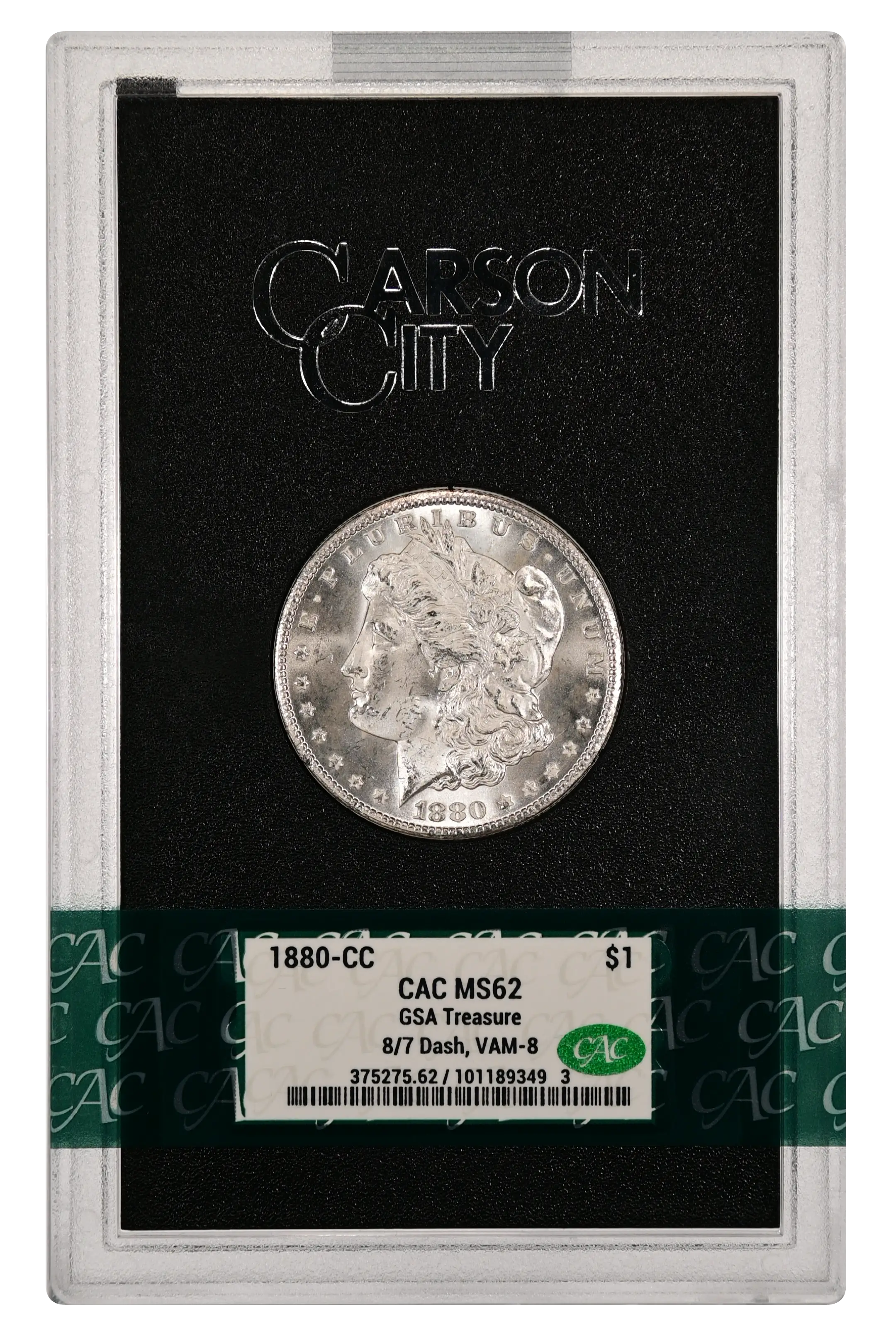 1880-CC GSA Treasure $1 8/7 Dash, VAM-8 CAC MS62