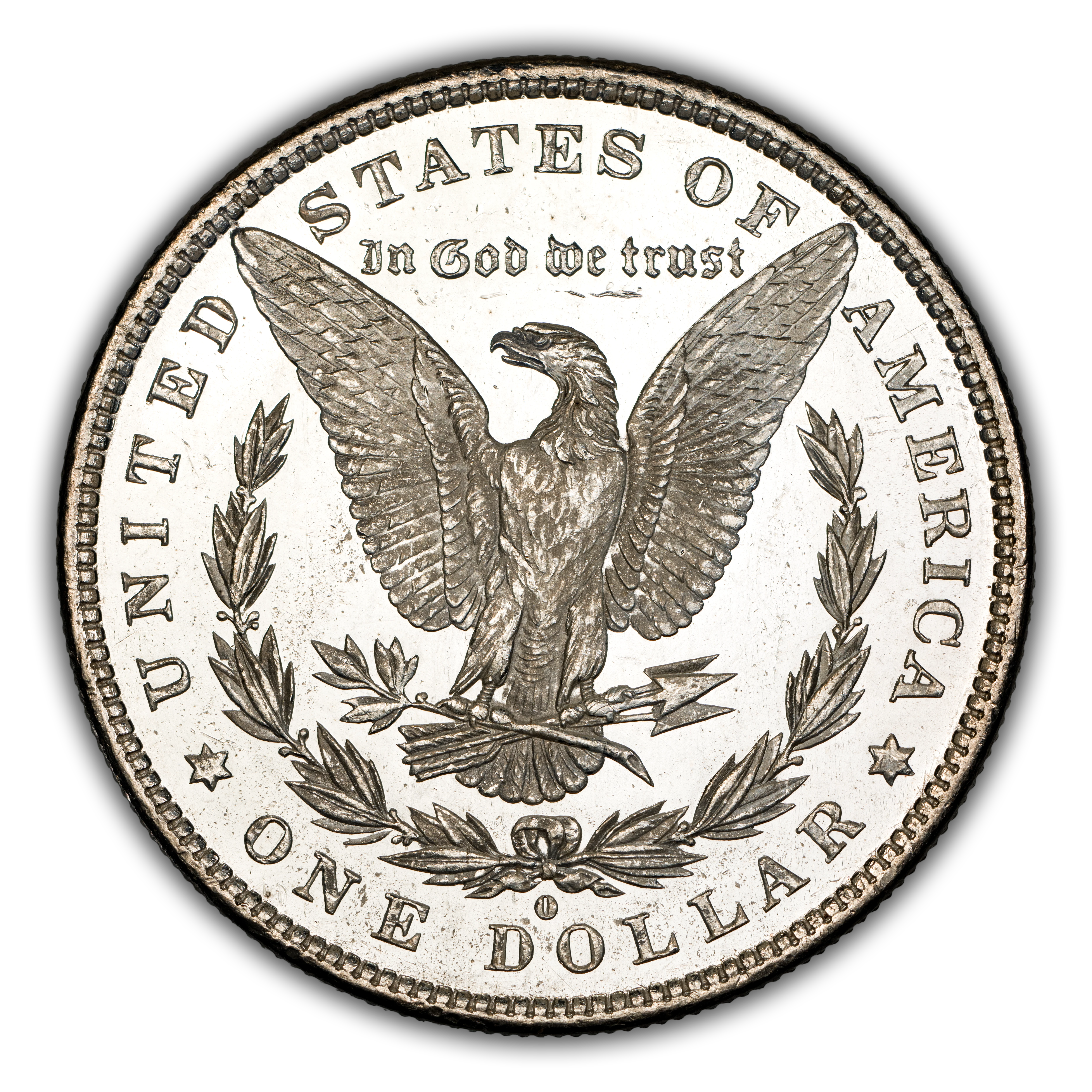 Reverse: The heraldic eagle is centered holding a bunch of arrows and branch surrounded by and olive leaves. The words UNITED STATES OF AMERICA * ONE DOLLAR frame the periphery. Mint mark, if any, appears above the letters DO of DOLLAR.