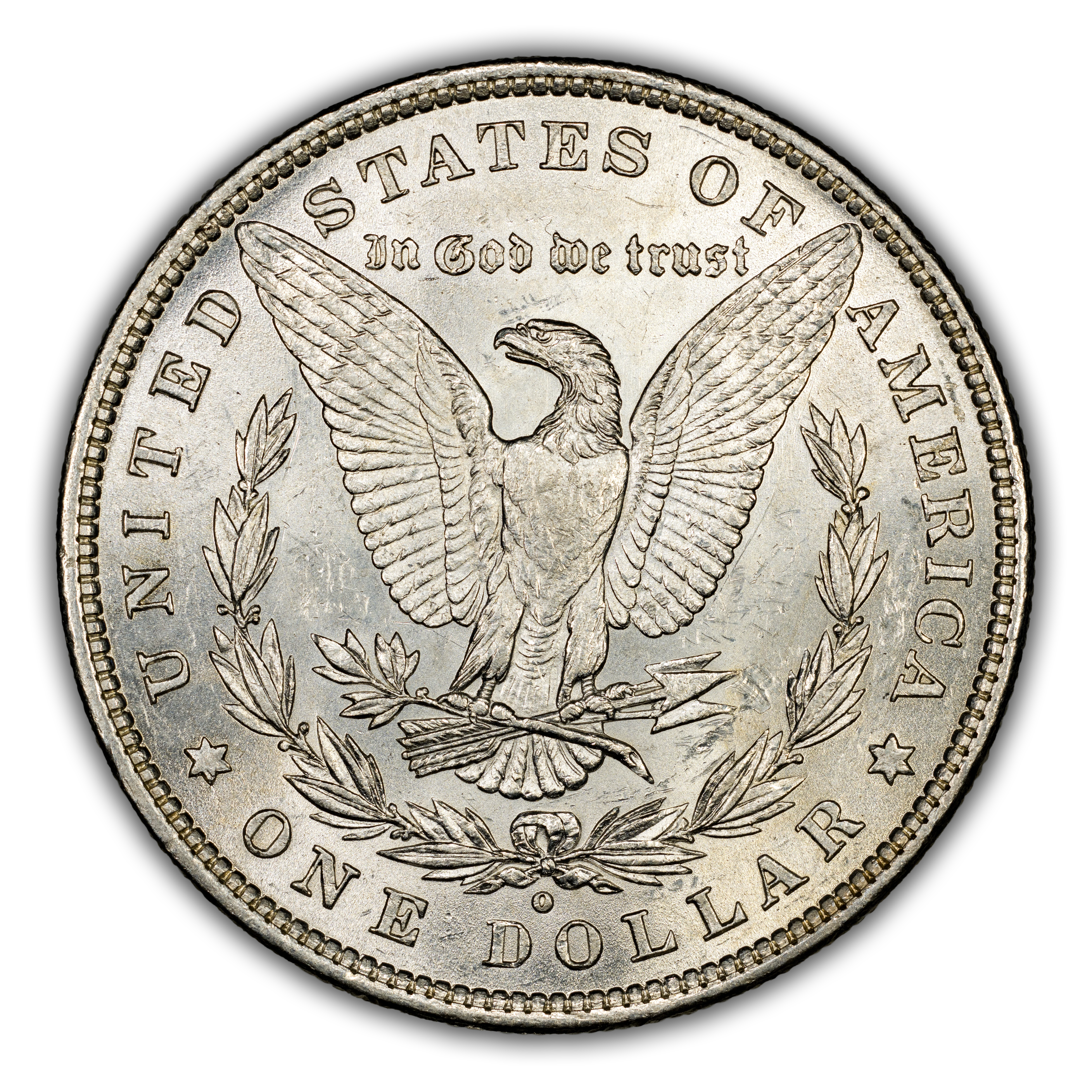 Reverse: The heraldic eagle is centered holding a bunch of arrows and branch surrounded by and olive leaves. The words UNITED STATES OF AMERICA * ONE DOLLAR frame the periphery. Mint mark, if any, appears above the letters DO of DOLLAR.