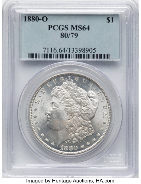1880-O $1 PCGS MS64 (VAM-4, 80/79, Crossbar)
