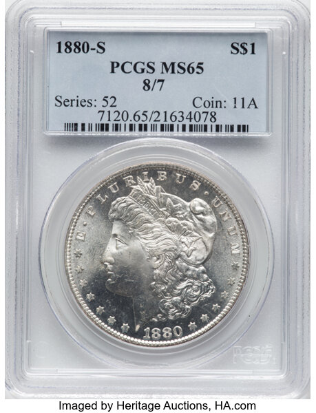 Top 100 VAM: 1880-S $1 VAM 9 8/7 Large S PCGS MS64