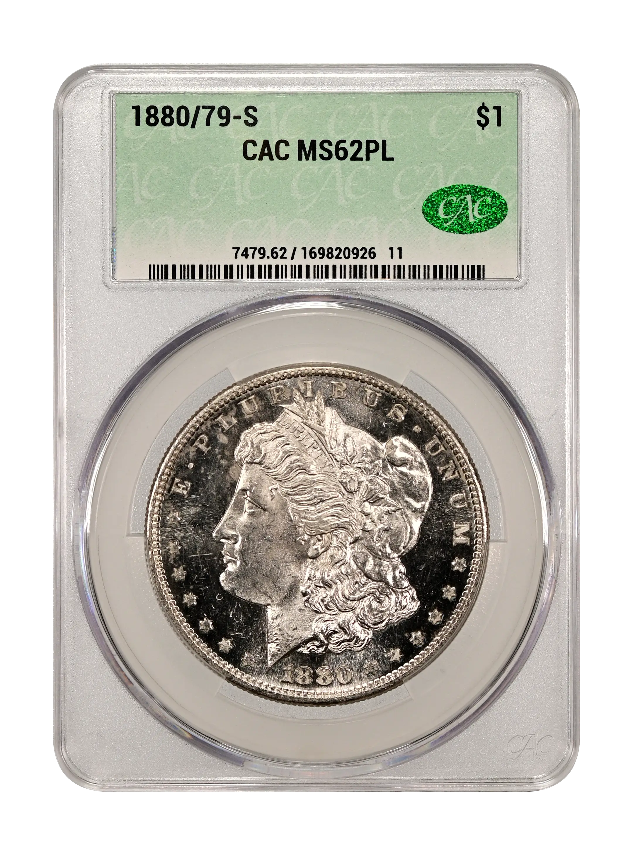 Top 100 VAM: 1880-S $1 PCGS MS64 PL (80/79, VAM-9, Large S)