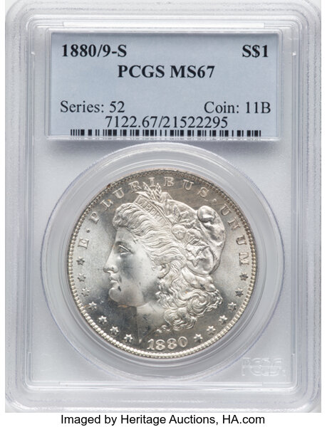 Hot 50 VAM: 1880-S $1 PCGS MS67 (VAM-11, 0/9 Overdate)