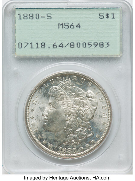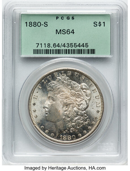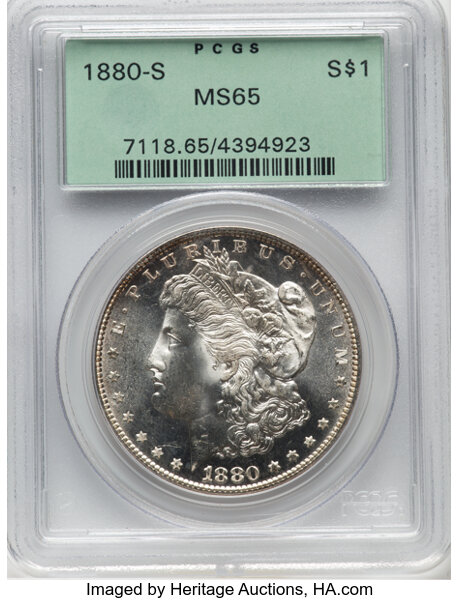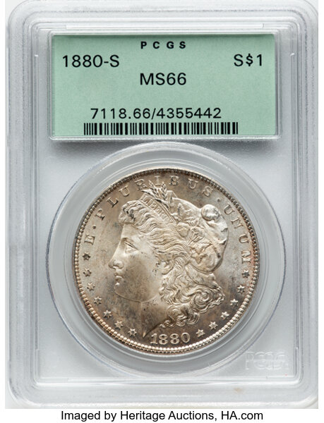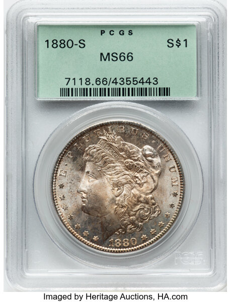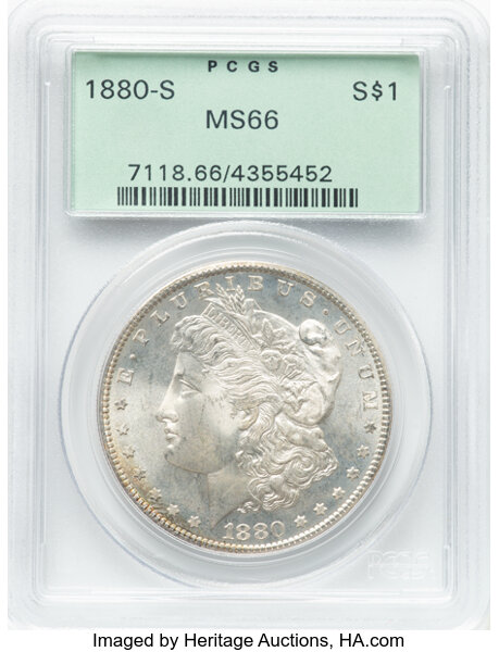 The 1880-S Morgan dollar is an extremely common coin in all circulated grades as well as MS grades through the Gem levels, including MS66. MS67s and MS68s are much more challenging though also offer collectors -- particularly type collectors -- a reasonable opportunity to own a Morgan dollar in what is otherwise an esoteric grade range for this series. Registry set collectors vie for the rare opportunity to own a Morgan dollar in MS69, and this issue fields a handful at that incredible grade level, though for a price that is well beyond the financial means of most collector. PLs and DMPLs are proportionately scarcer than typical MS examples but widely available for this issue.