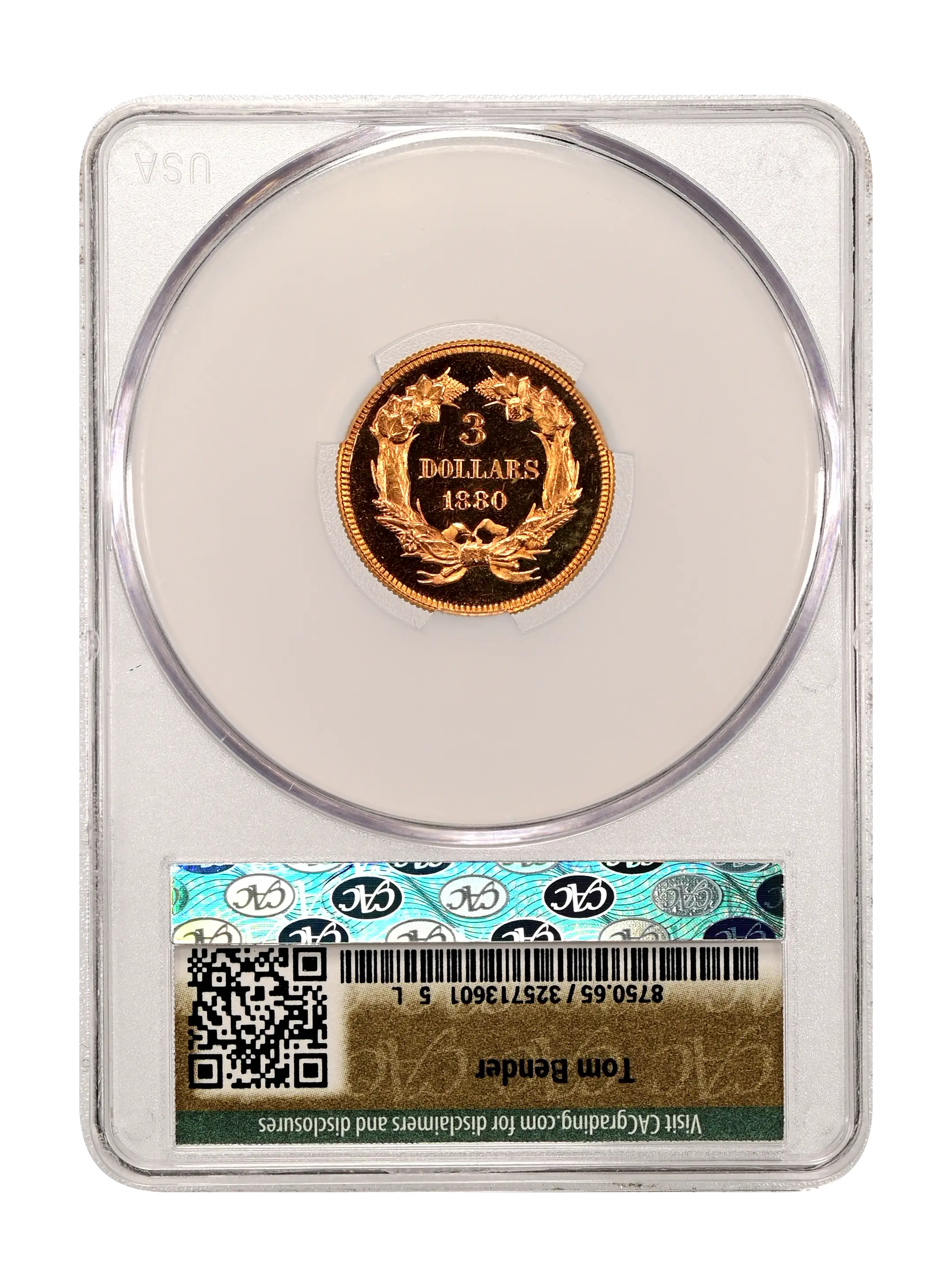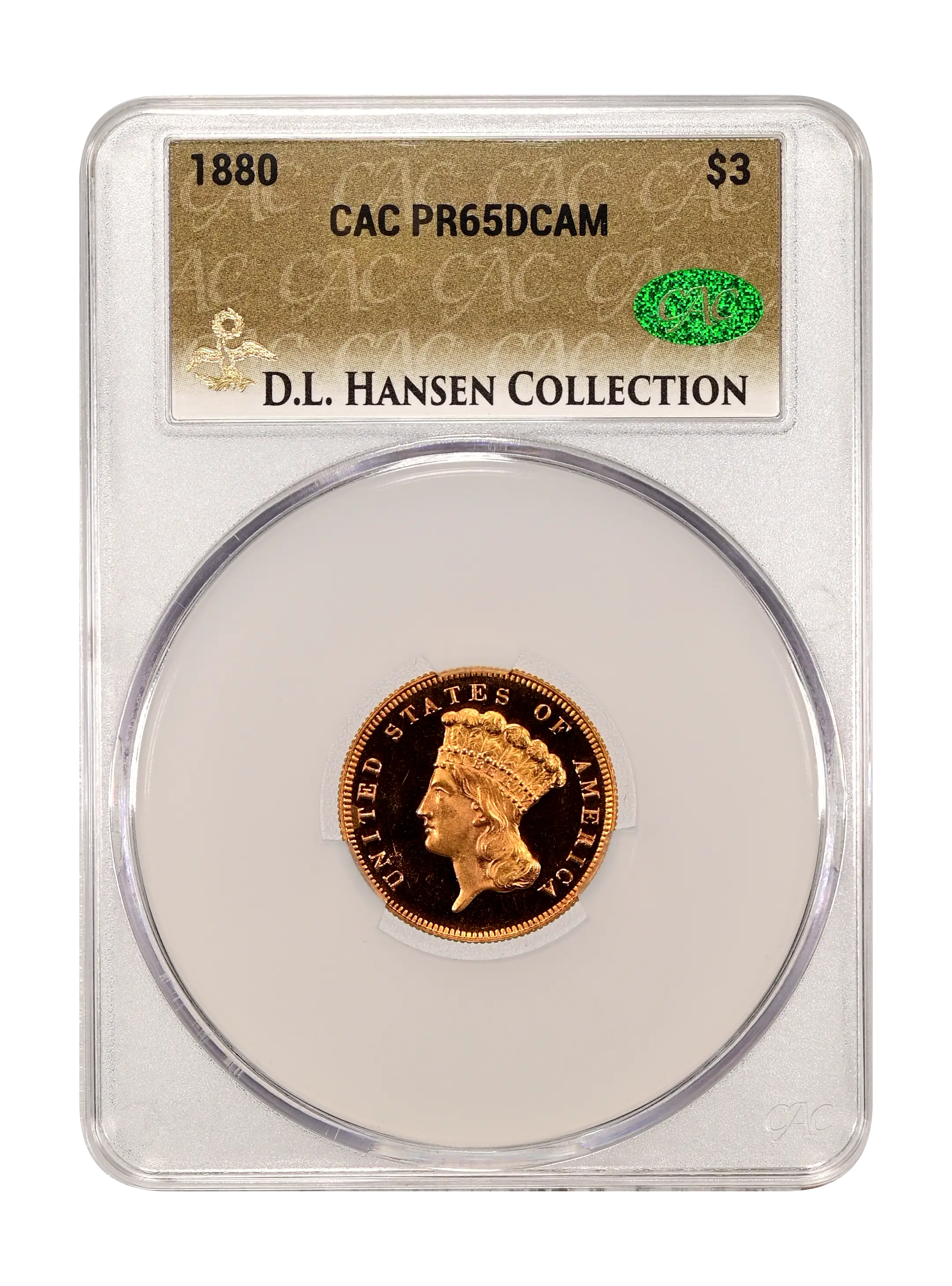 1880 $3 DCAM (Proof) CAC PR65DCAM
