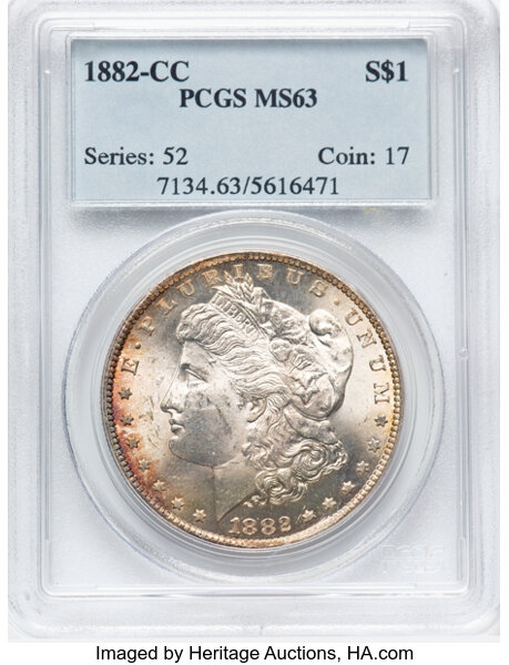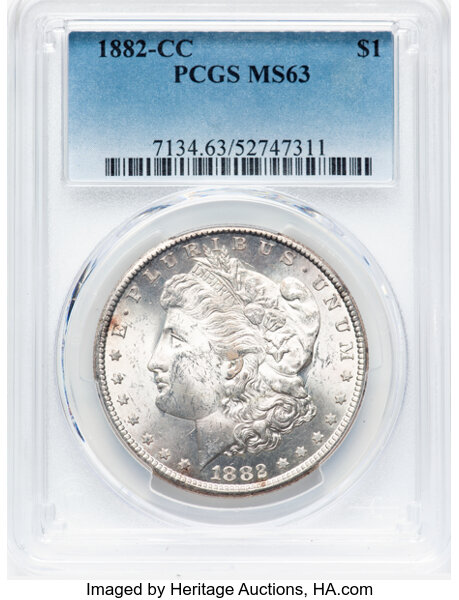 <B>1882-CC $1 MS63 PCGS.</B></I> CDN: $335 Whsle. Bid for NGC/PCGS MS63. Mintage 1,133,000. ...