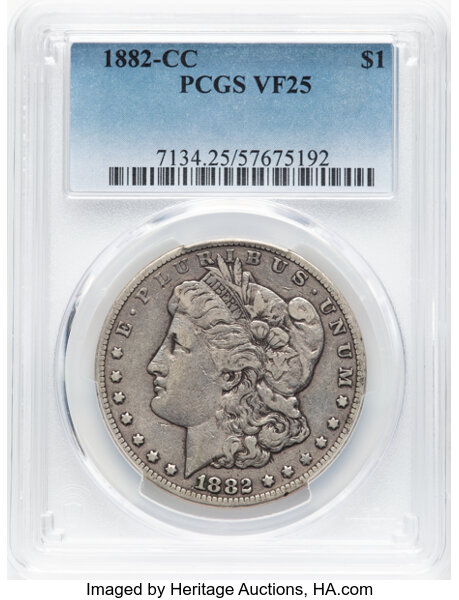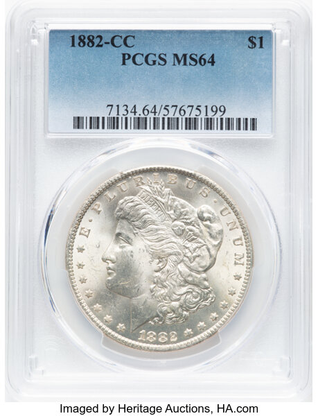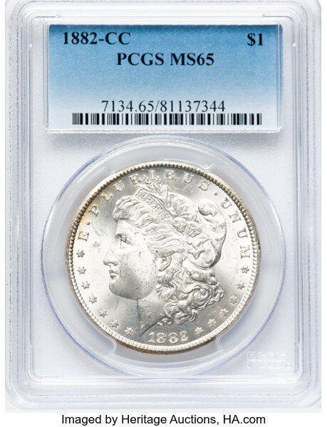 <B>1882-CC $1 MS65 PCGS.</B></I> CDN: $490 Whsle. Bid for NGC/PCGS MS65. Mintage 1,133,000. ...
