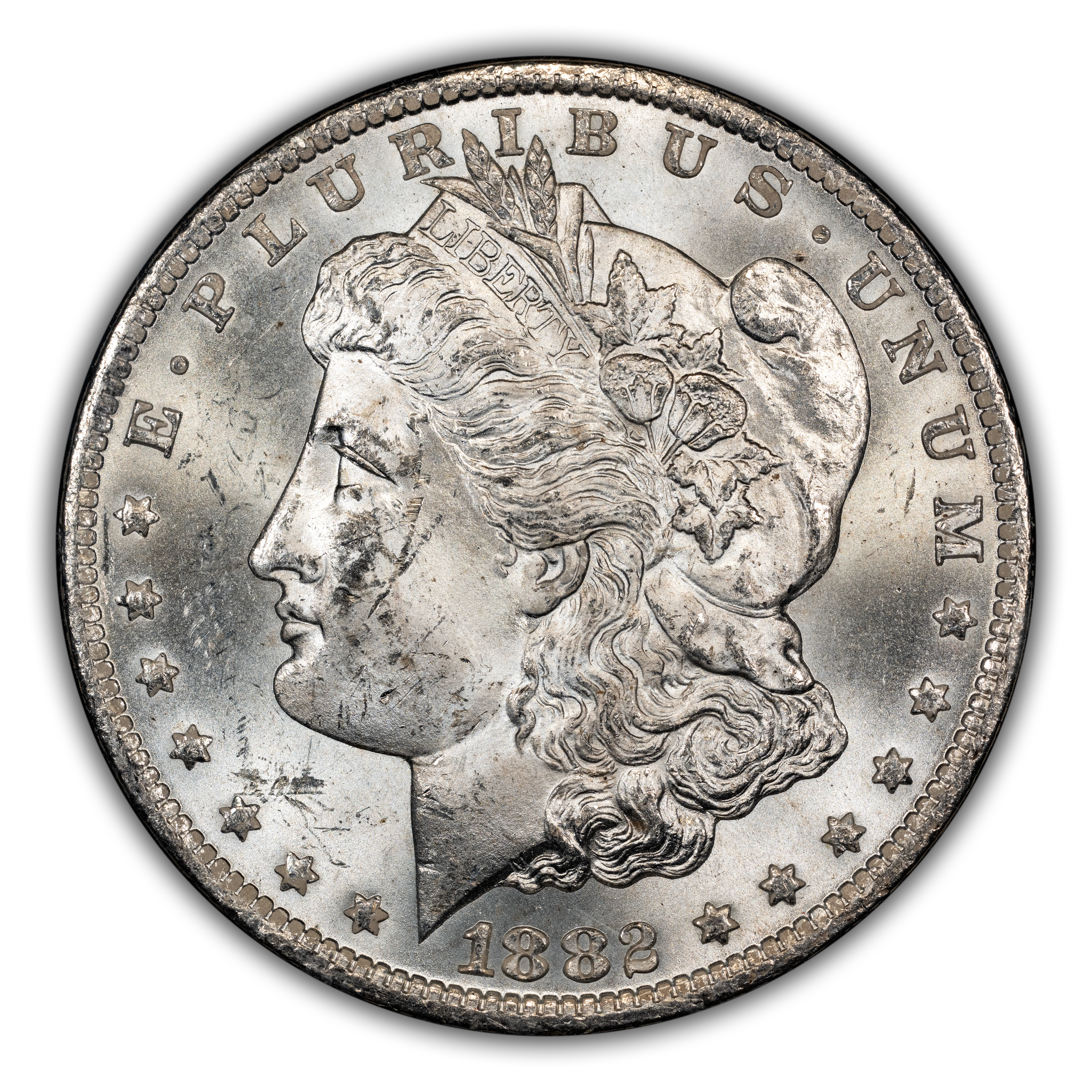 The 1882-CC Morgan dollar was released to the public by the GSA in huge numbers, with 605,029 sold over the course of the 1970s and early 1980s. This represents about half of the total 1,133,000 examples struck, suggesting large sums of these coins were simply never released in the immediate months and years after they were made. Most encountered in GSA hard packs and soft packs are uncirculated, though some are found with circulation wear. PLs and DMPLs in GSA packaging are rare and highly sought after.