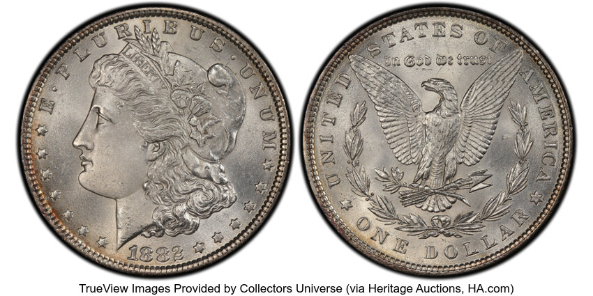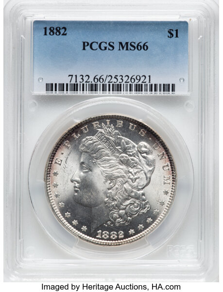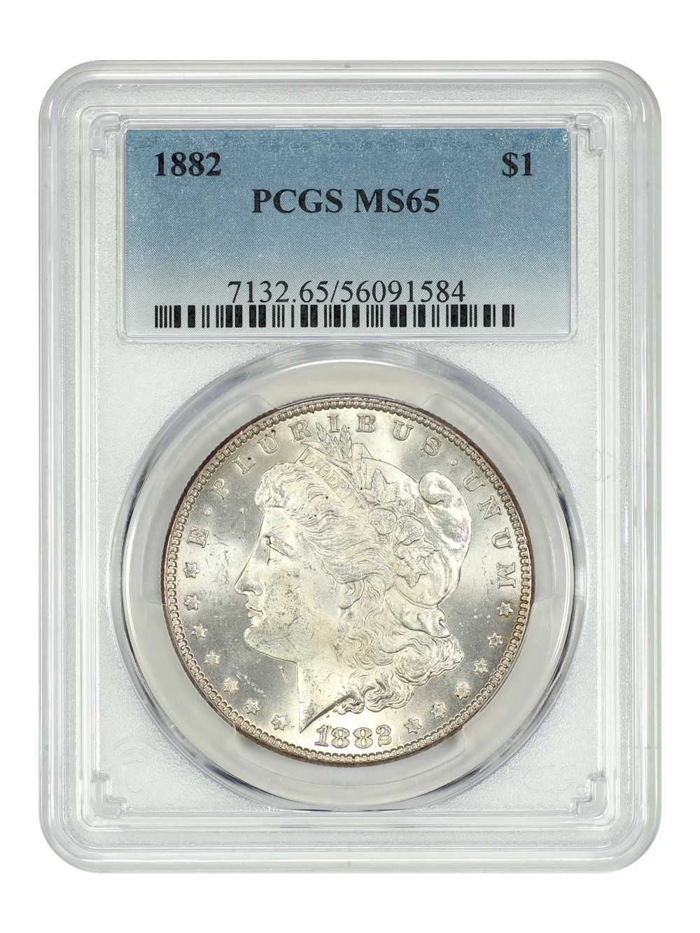 The 1882 Morgan dollar is a common coin that is easy to locate in all grades from well circulated up through the Gem levels. It becomes very scarce above MS66 and rare in MS67 or higher. It is generally easy to locate in PL or DMPL designations, especially under MS65, though significantly more challenging above that range.