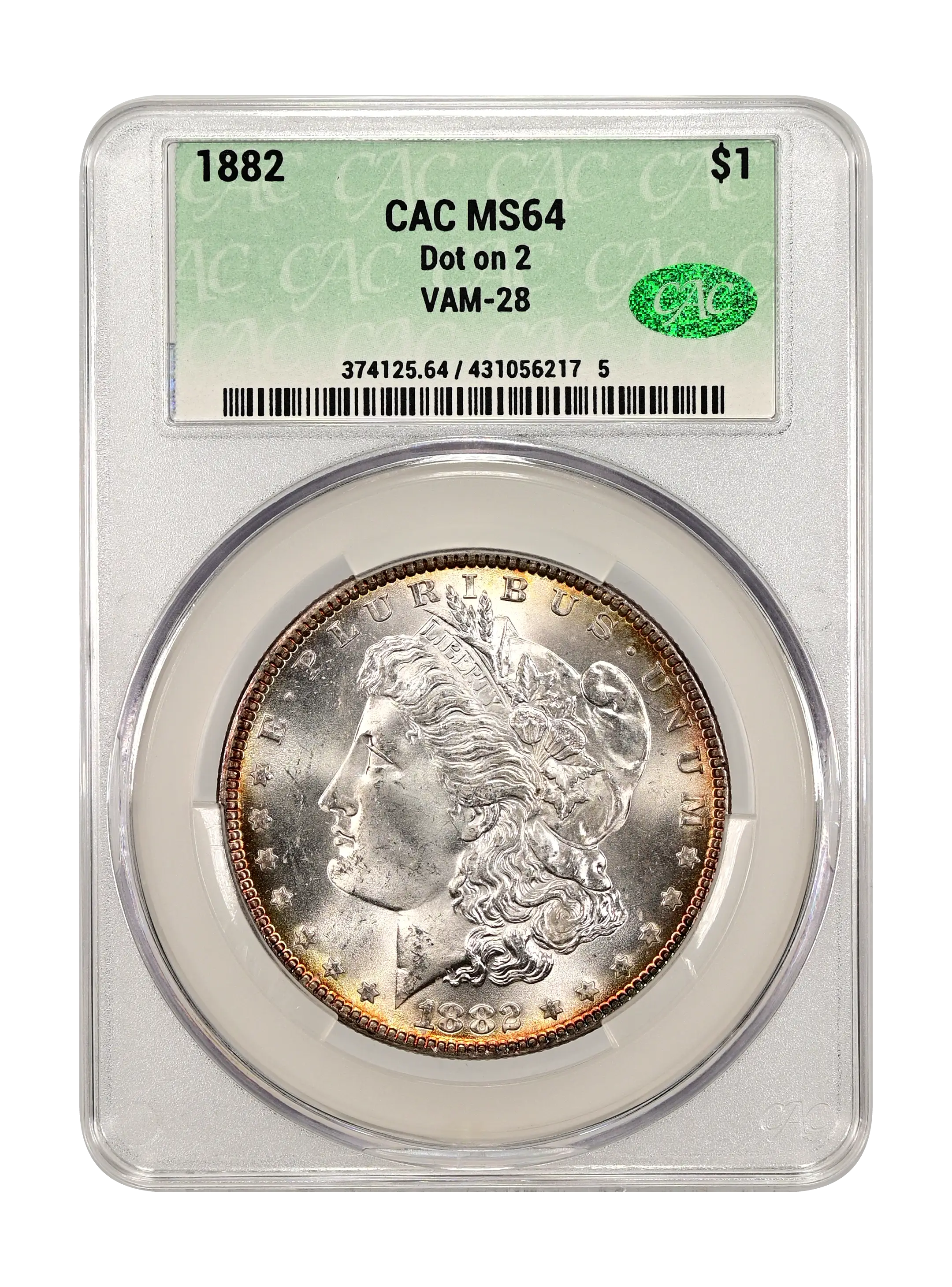 1882 Dot on 2 $1 VAM-28 CAC MS64