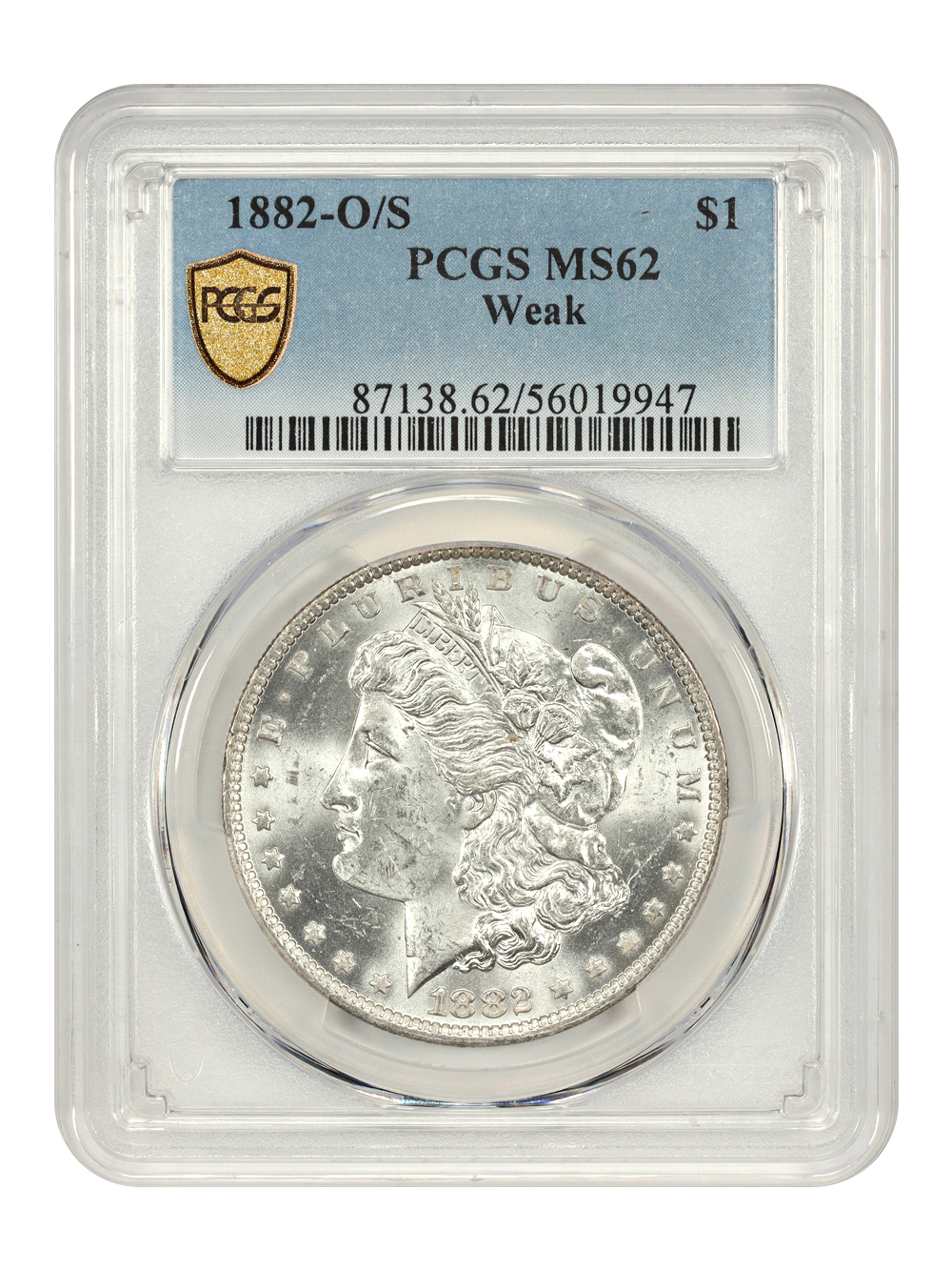 1882-O/S $1 Weak PCGS MS62