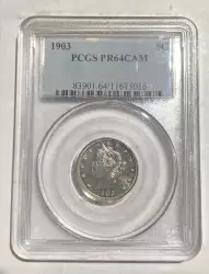 1883 5c PCGS/CAC Proof 64 CAM (With Cents)