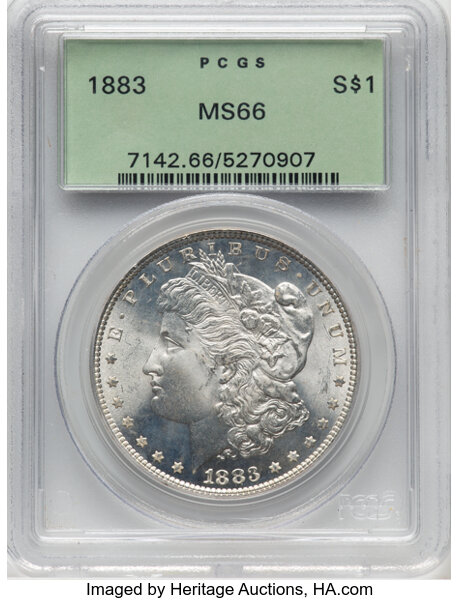 Philadelphia-mint Morgan dollars are extremely common through MS66 and becomes much scarcer in higher grades. However, there is a handful of survivors in the MS68 range, and these sell for huge premiums thanks to very tight pressure from registry set builders who wish to acquire these few specimens for their highly competitive collections. PLs and DMPLs are about equally scarce as the other, with both proving more challenging in the Gem range or better.