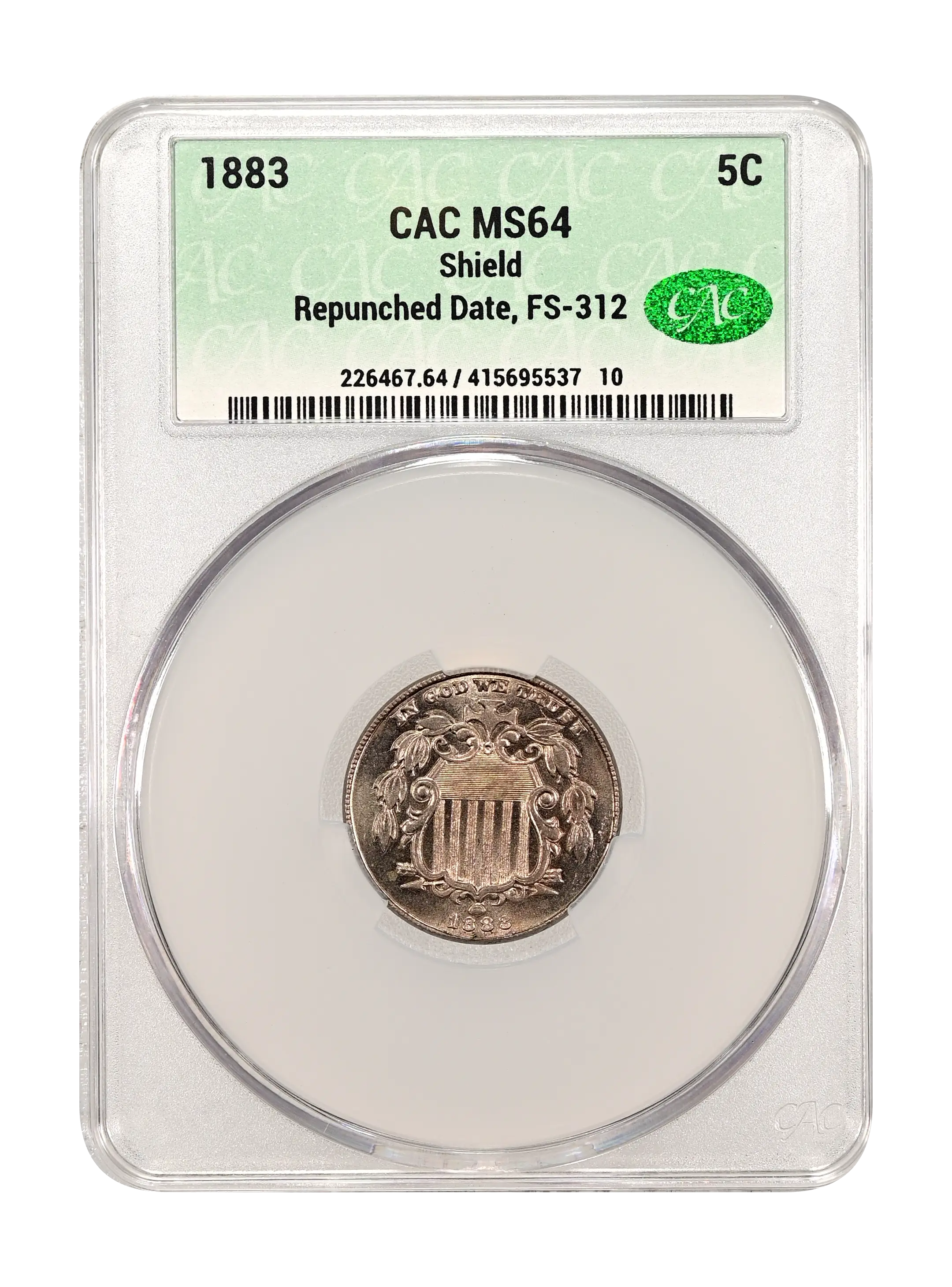1883 Shield, Repunched Date 5c FS-312 CAC MS64