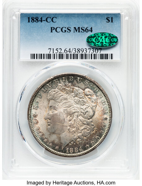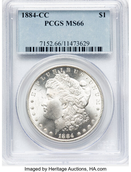 This is one of the most common Carson City Morgan dollars, with all CC-mint Morgans enjoying an enthusiast base all their own. Thus, premiums are strong even on the relatively common examples such as this one. These are widely available through a grade of about MS66 and become much scarcer at higher levels. A tiny number survive above MS67, with a few in the MS68 range -- a threshold at which serious bidders seemingly stop at almost nothing to claim their prize. PLs are scarce and DMPLs are somewhat scarcer, with those grading higher than MS65 very challenging but available for a price.