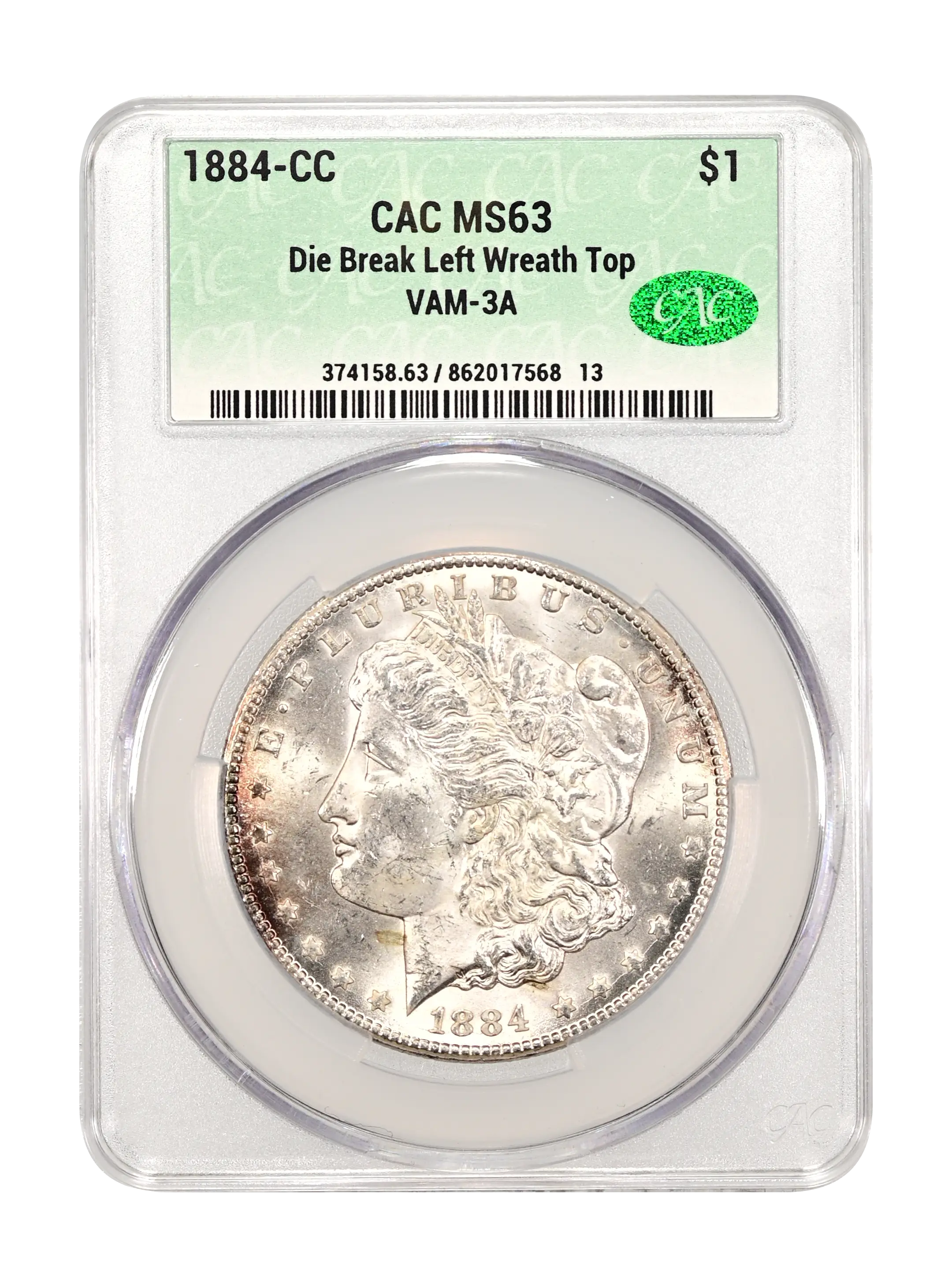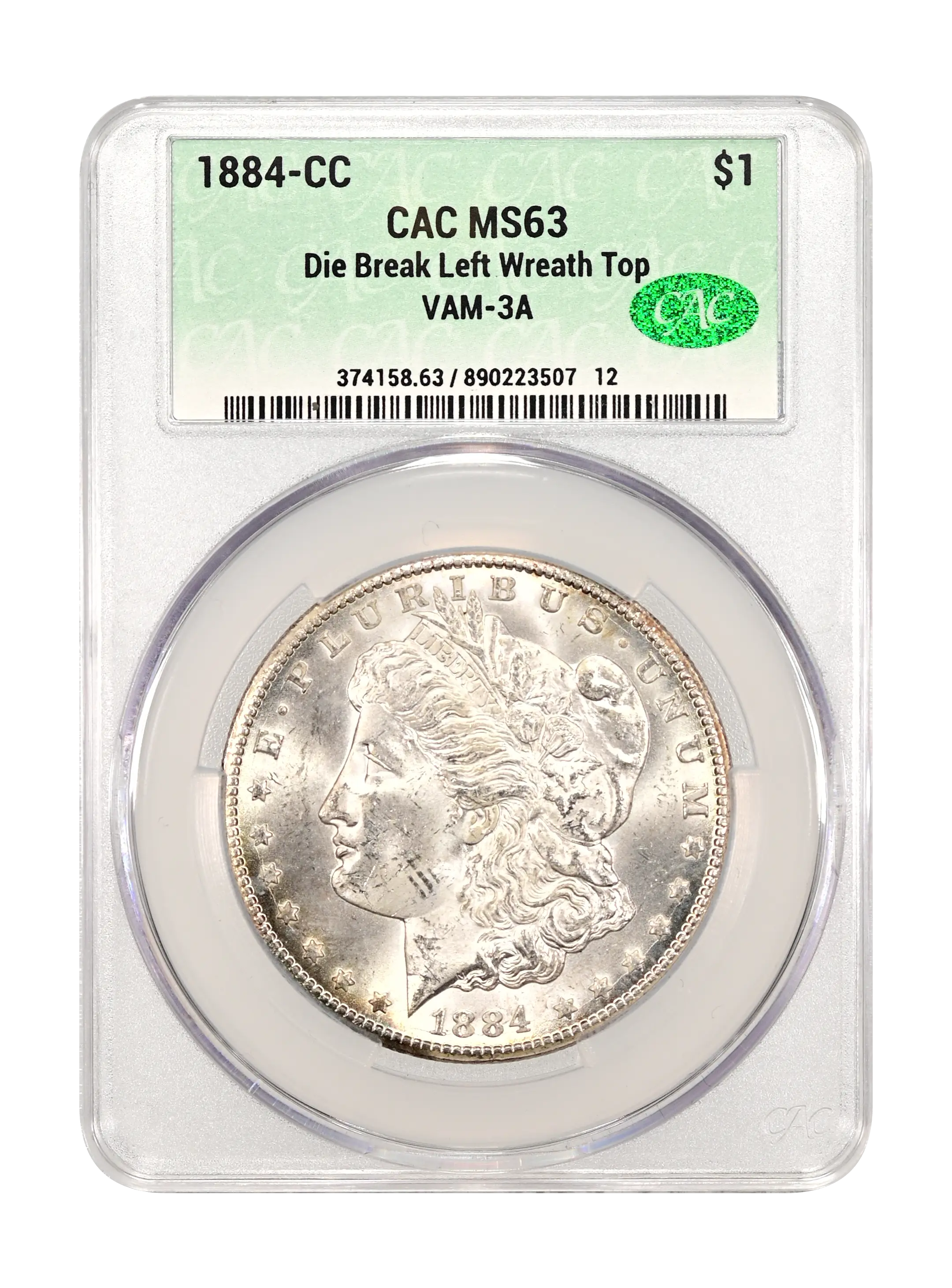 1884-CC Die Break Left Wreath Top $1 VAM-3A CAC MS63
