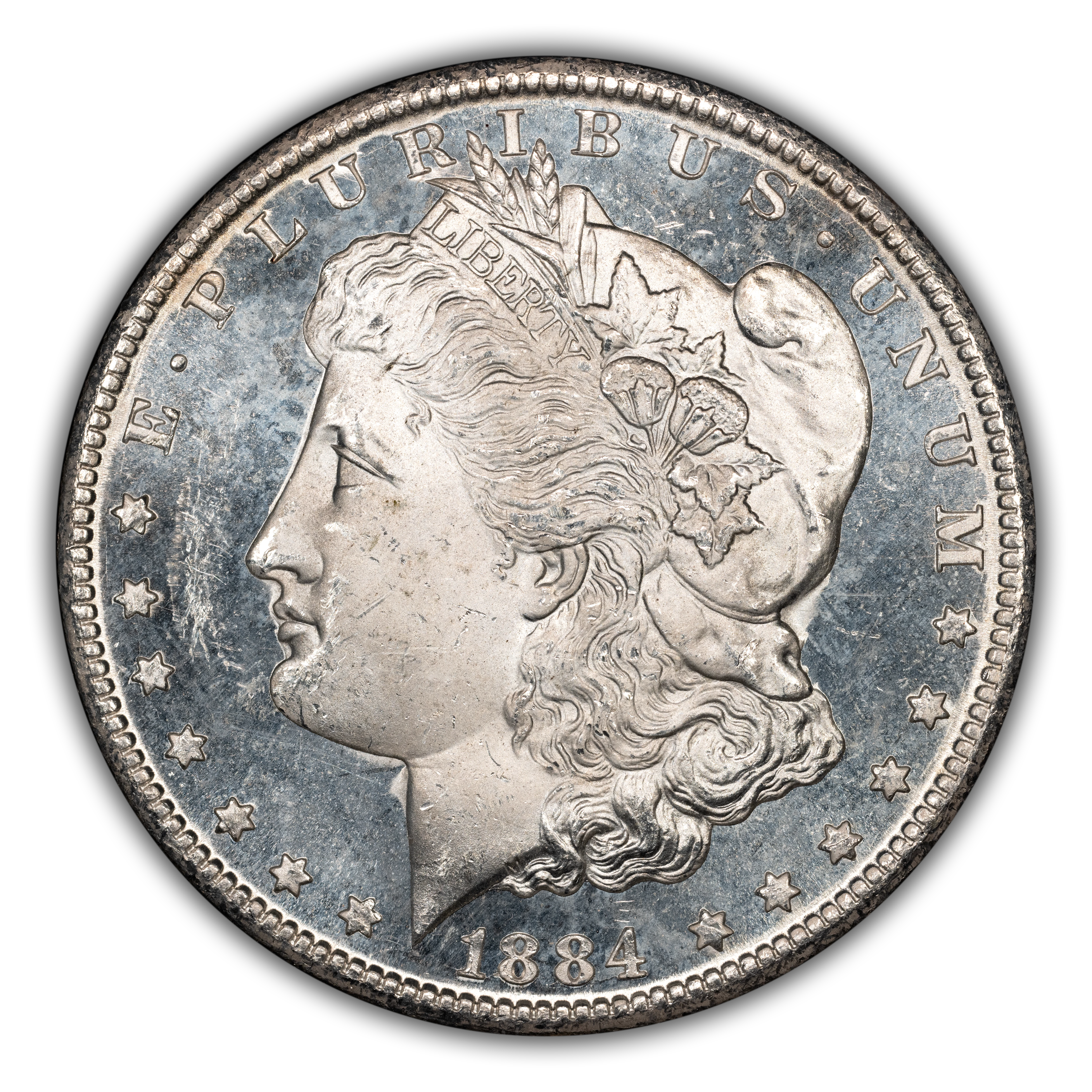 - 1884-CC $1 GSA Hoard, Die Gouge Cheek, VAM-7 MS DMPL