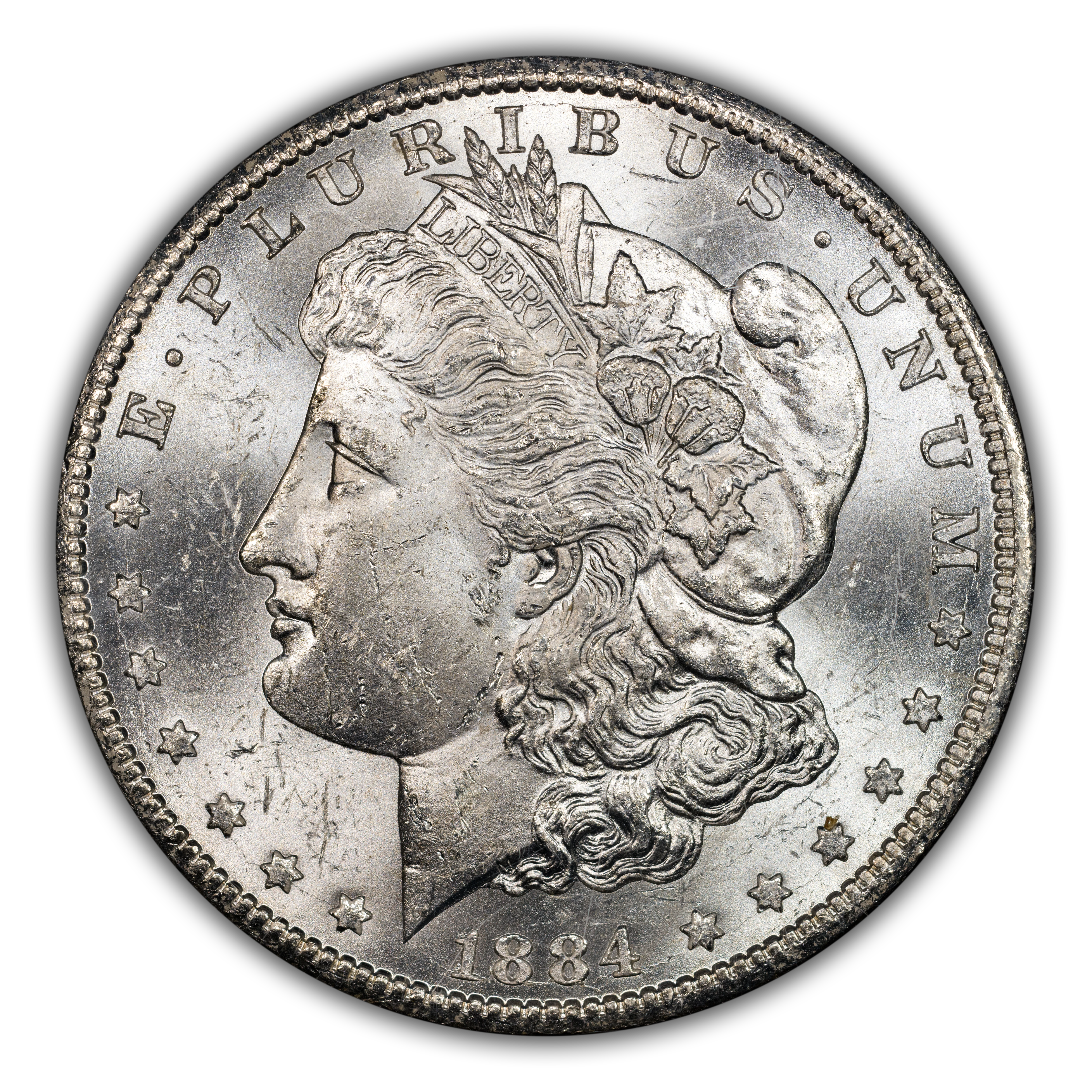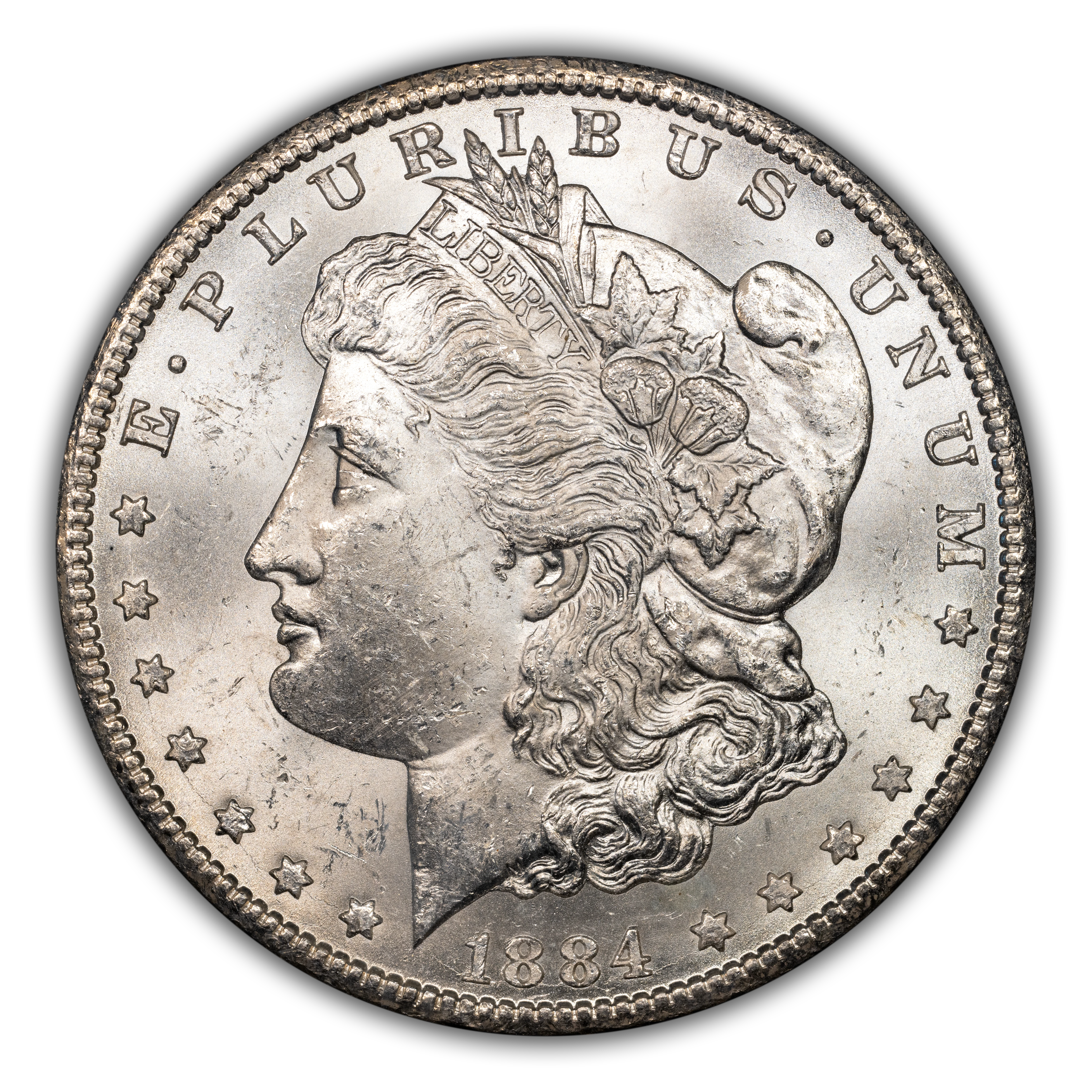 The 1884-CC GSA Morgan dollar is the most common of all GSA Hoard silver dollars, counting for a remarkable 962,638 examples out of a total production of 1,136,000. Number crunchers will see that the total sum of 1884-CC GSA Morgan dollars accounts for approximately half of all GSA silver dollars sold in the 1970s and early 1980s as part of the Great Silver Sale. While relatively common, buyers place a premium on examples still in their original government GSA packaging, and PLs or DMPLs found within are highly desirable.