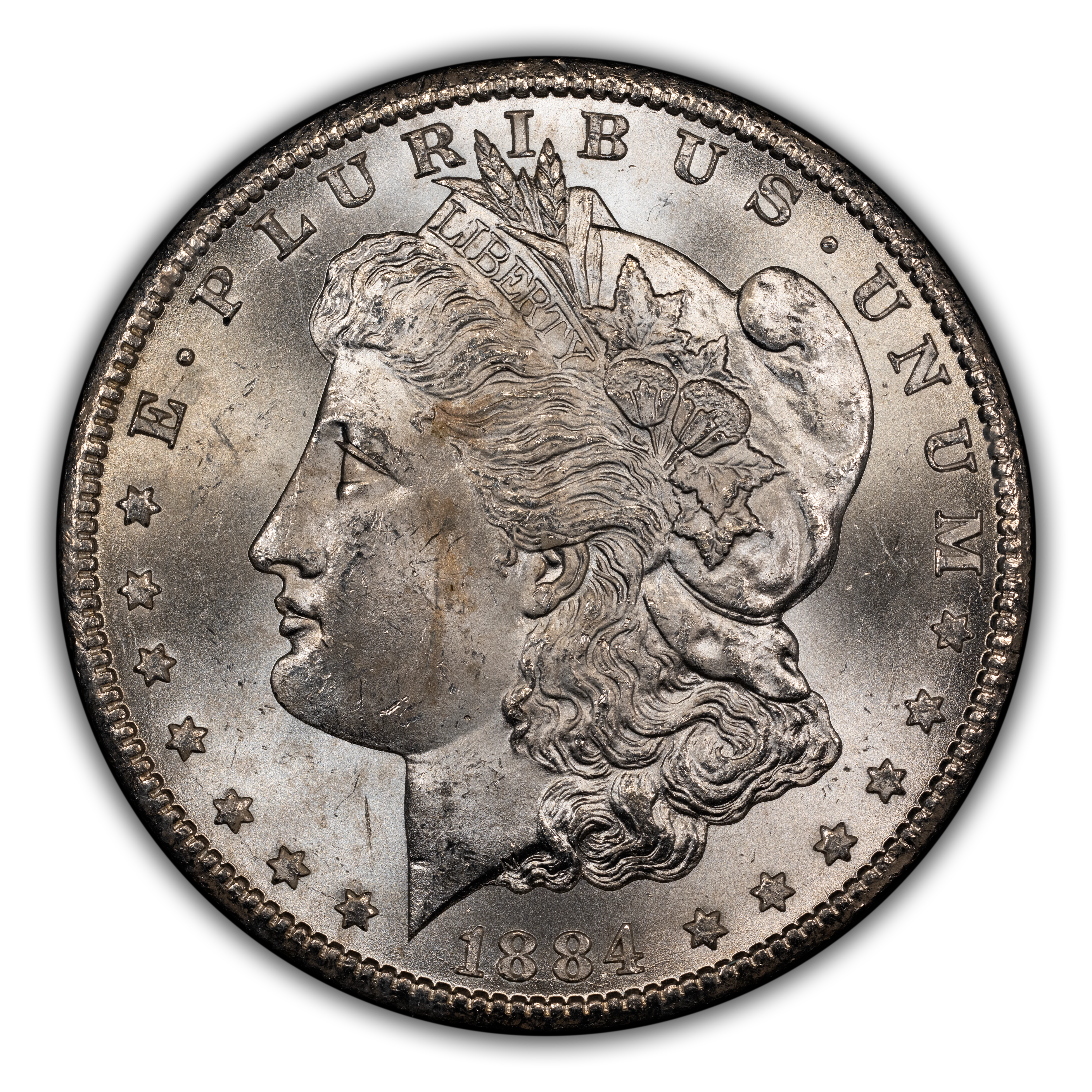 <B>1884-CC $1 GSA, MS63 NGC.</B></I> CDN: $310 Whsle. Bid for NGC/PCGS MS63. Mintage 1,136,000....