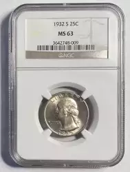 Reverse: The heraldic eagle is centered in the design with the words UNITED STATES OF AMERICA and QUAR. DOL. around the periphery. A ribbon above the eagle's head bears the motto IN GOD WE TRUST
