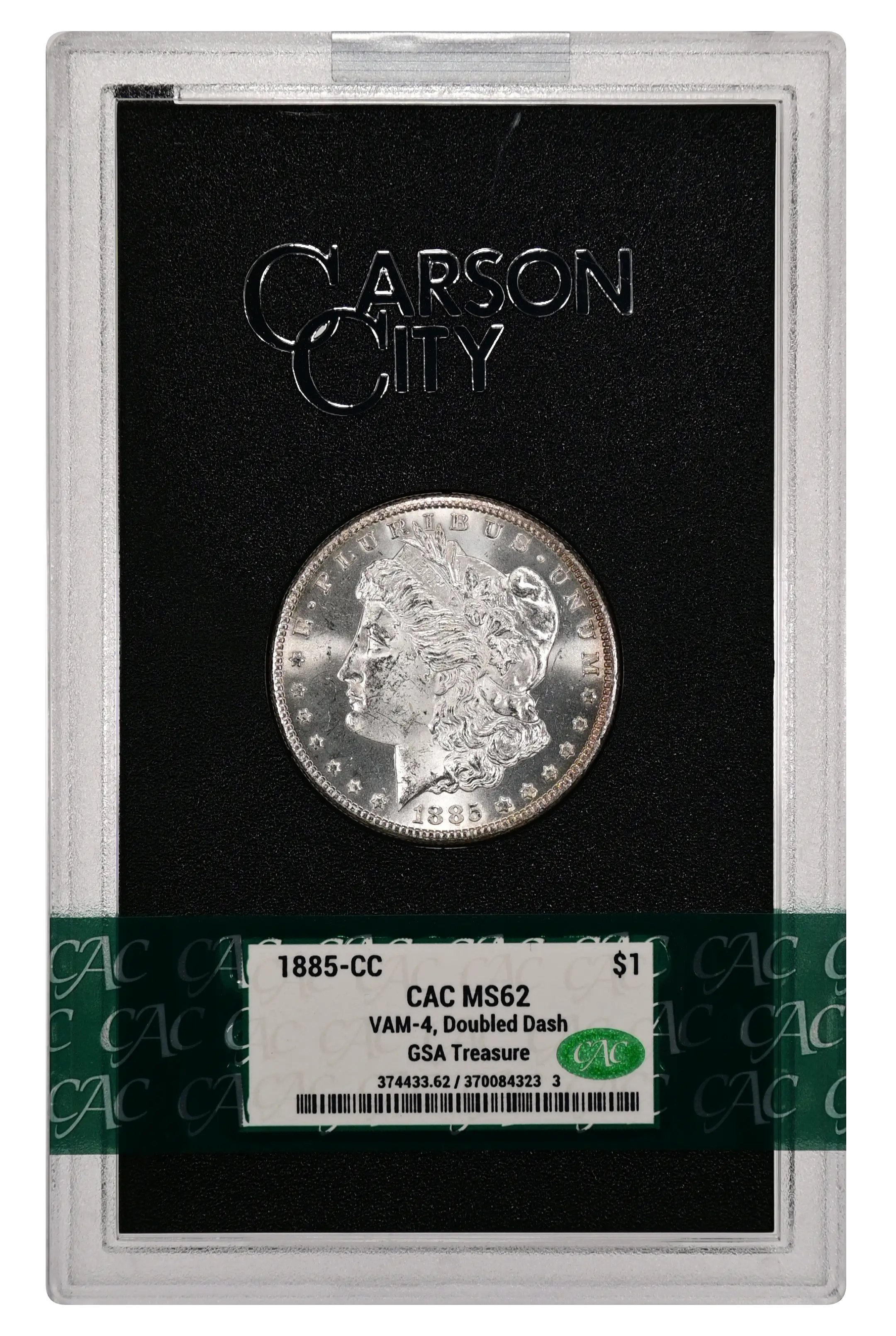 1885-CC VAM-4, Doubled Dash $1 GSA Treasure CAC MS62