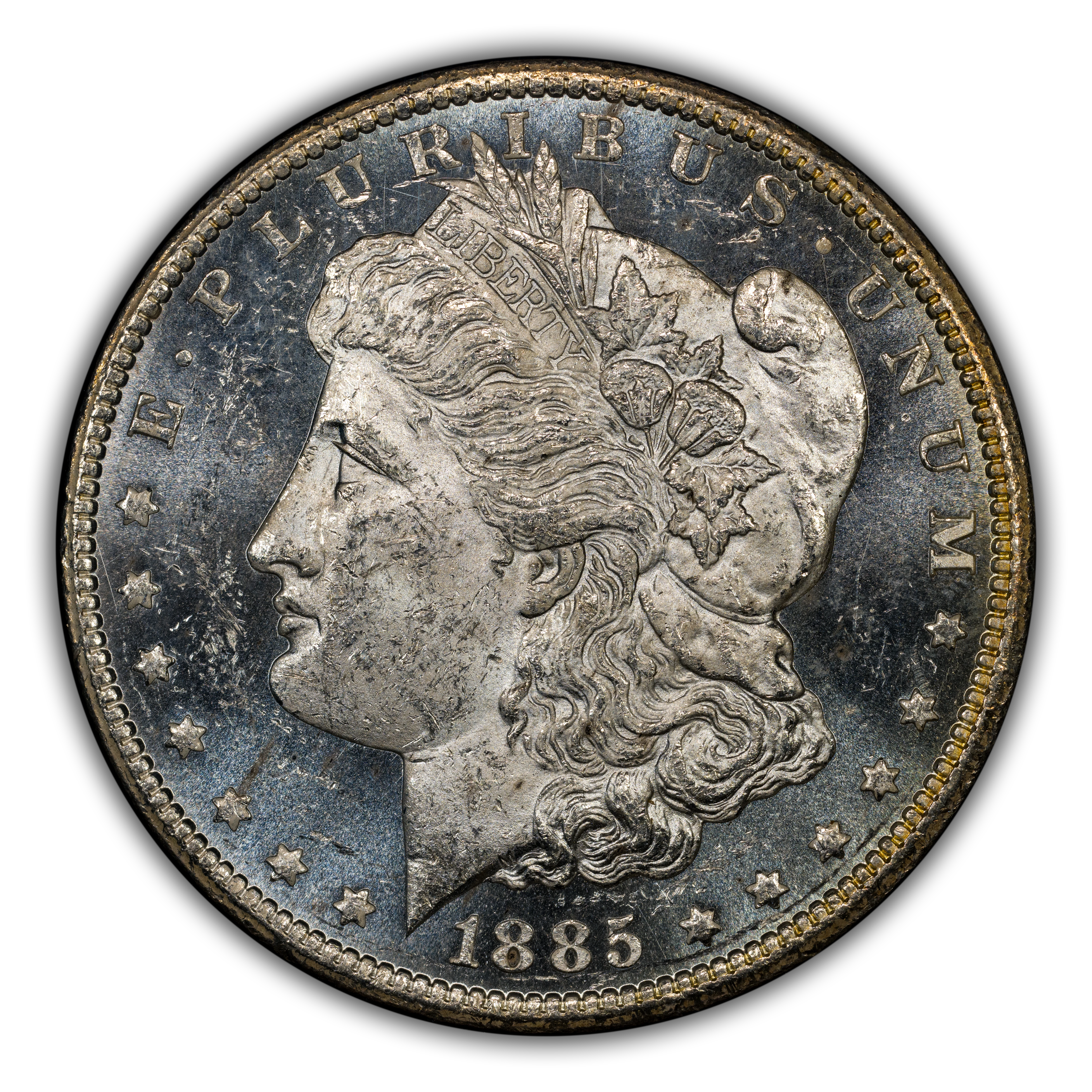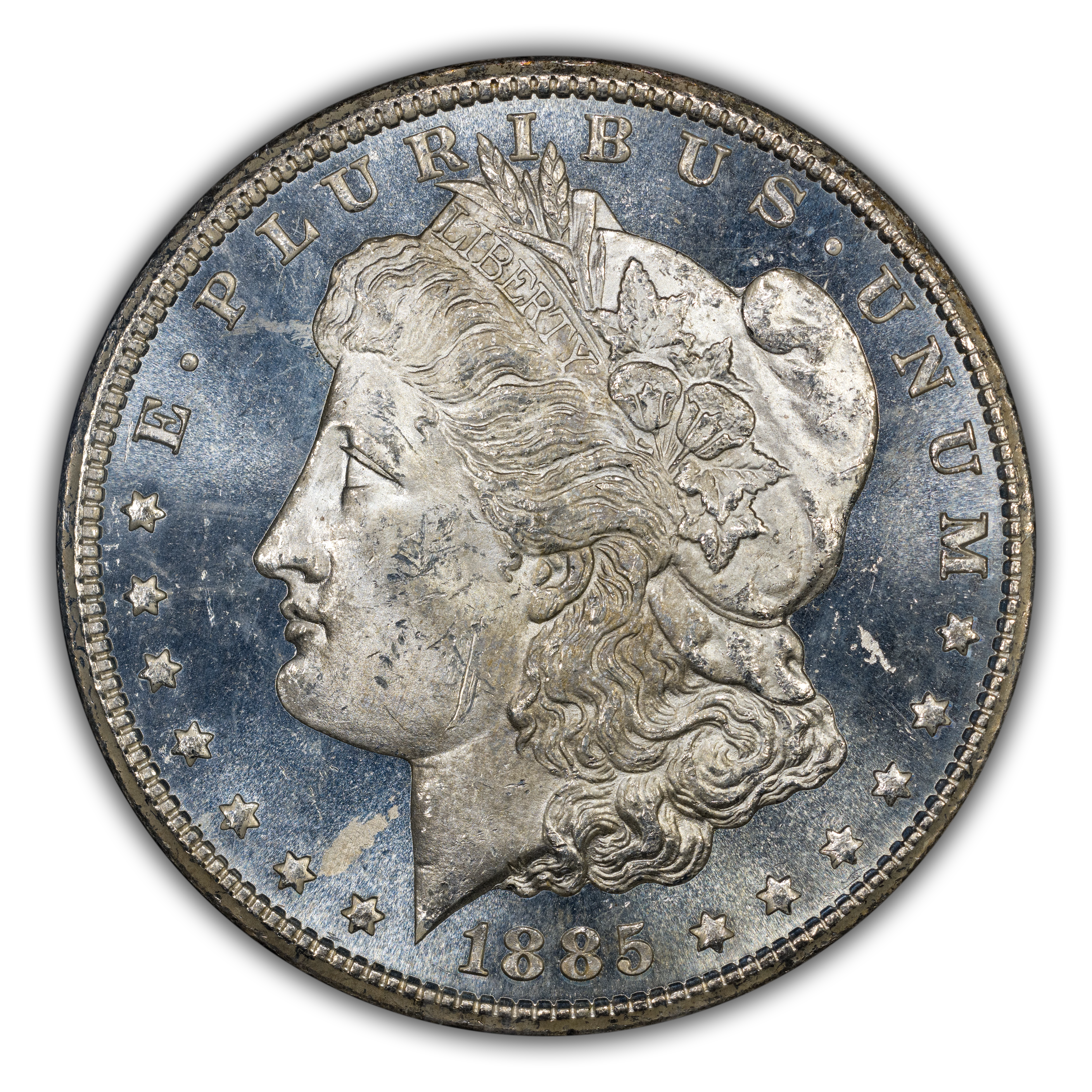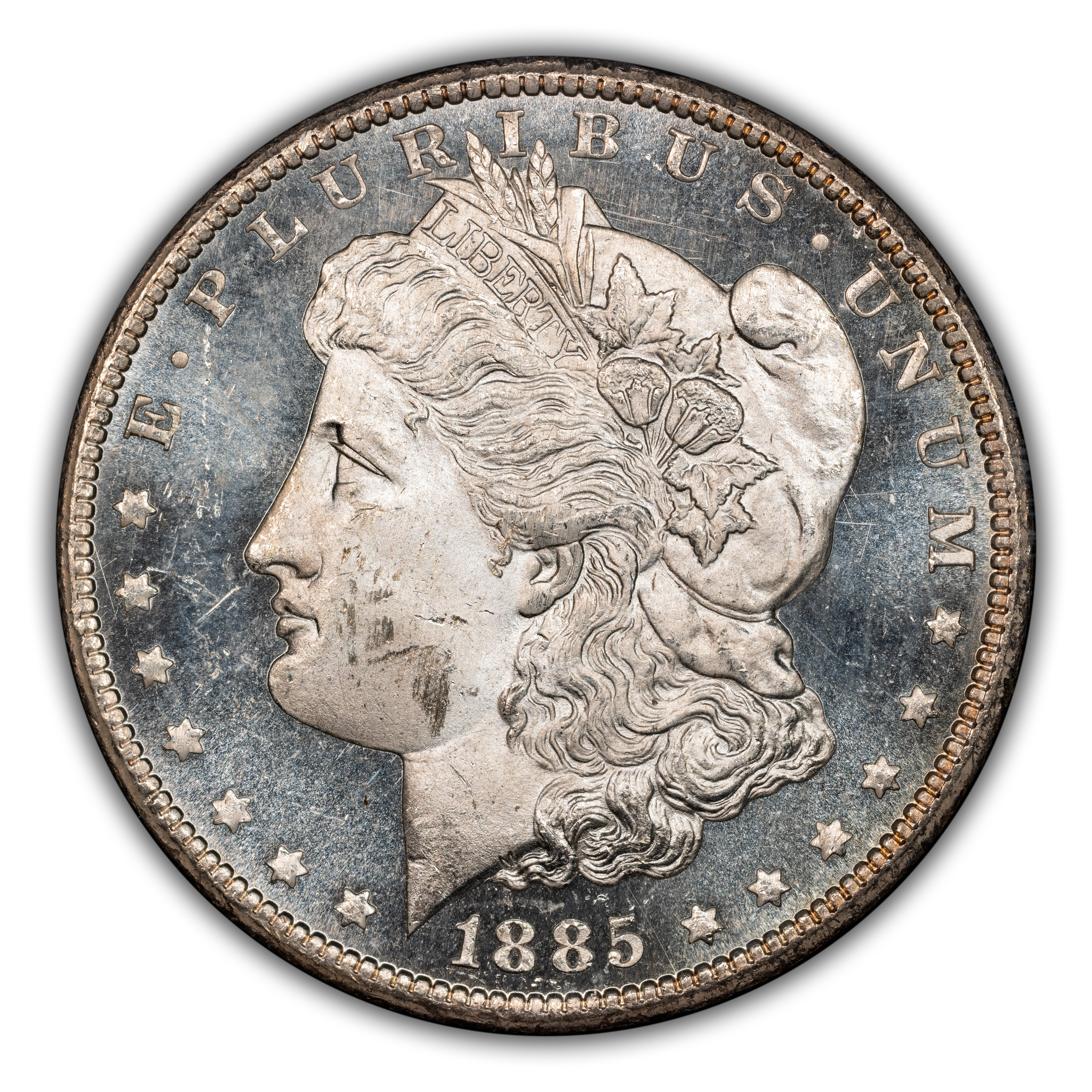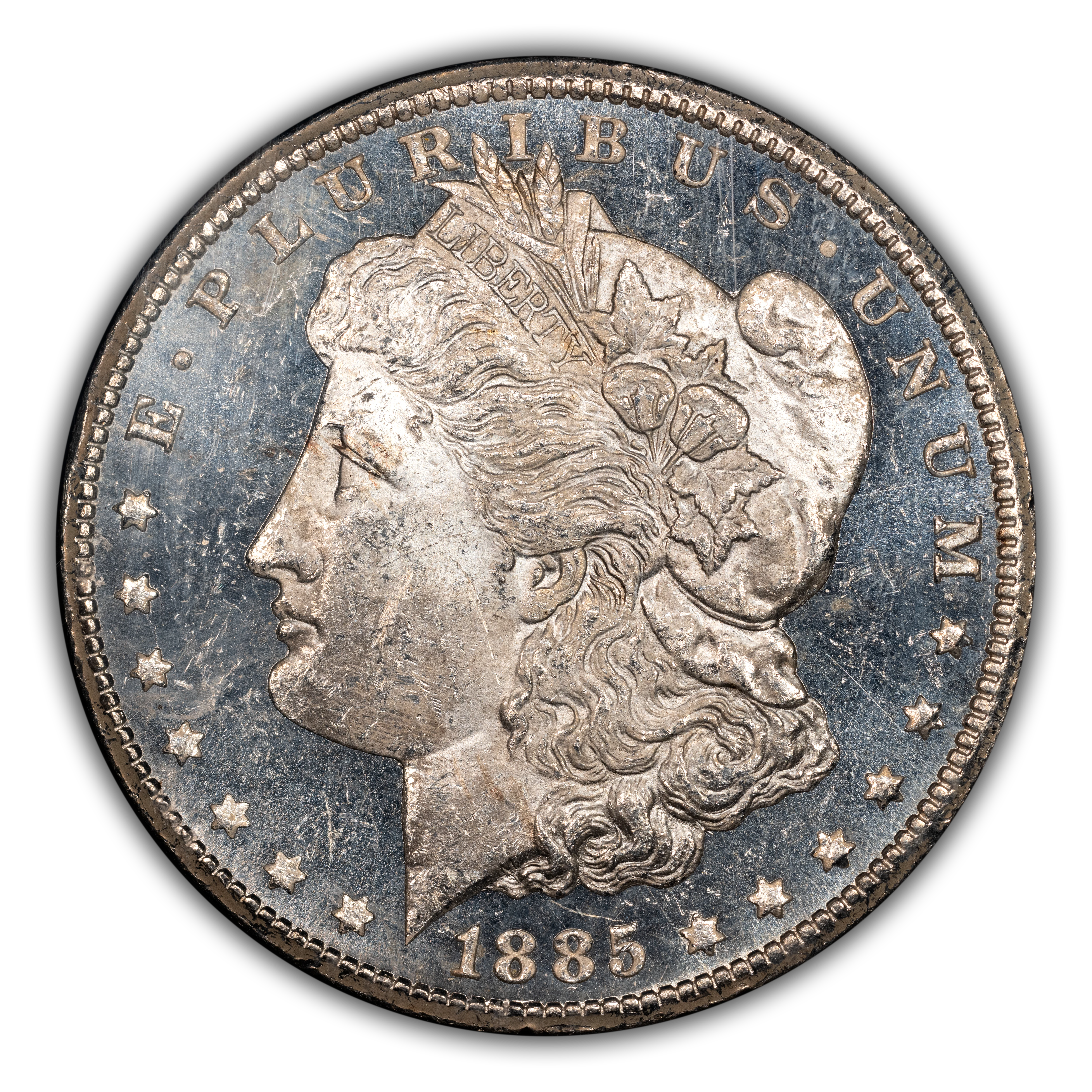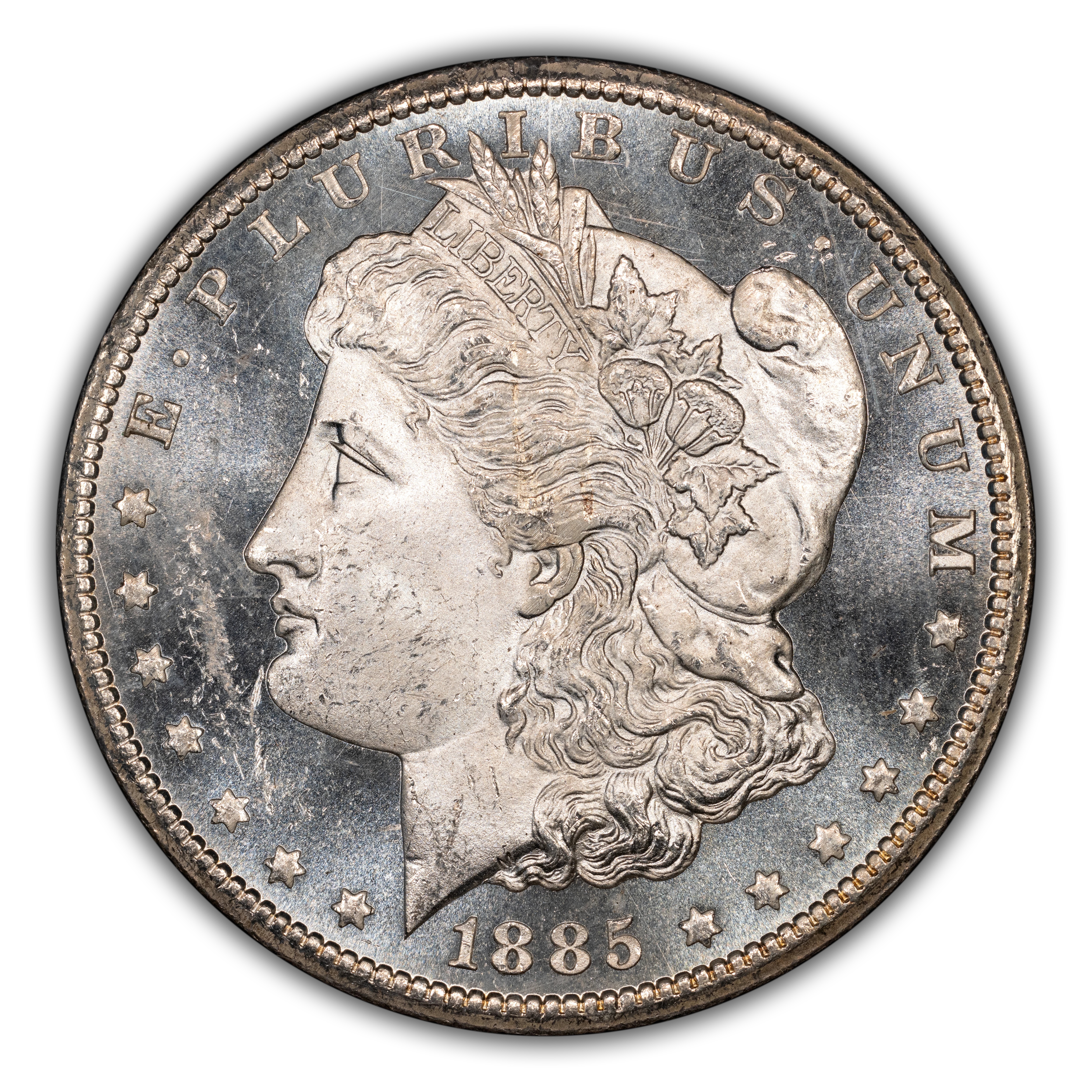 1885-CC $1 GSA MS64 Deep Mirror Prooflike PCGS. PCGS Population: (10/2 and 1/0+). NGC Census: (46/19 and 4/2+). MS64. ...