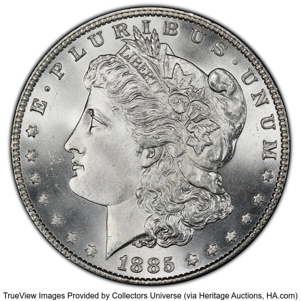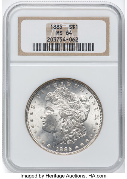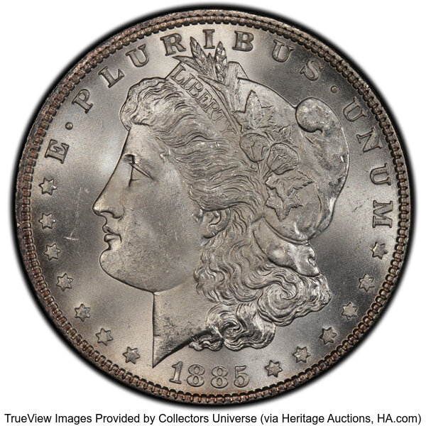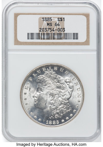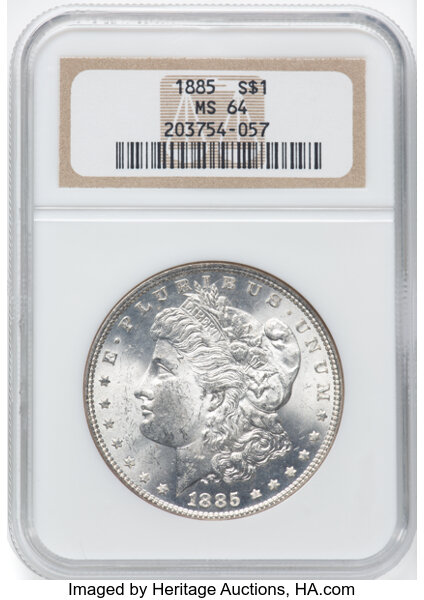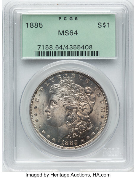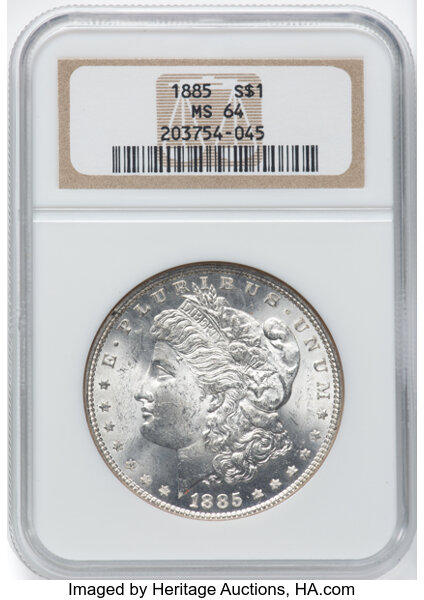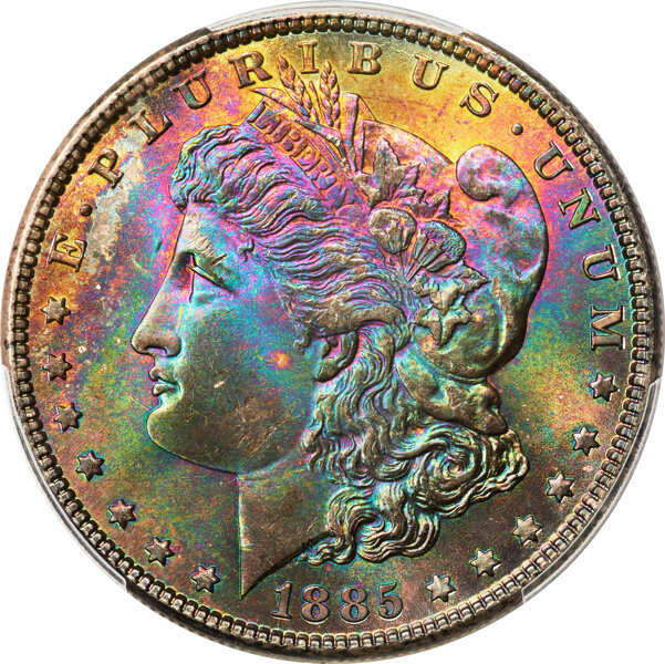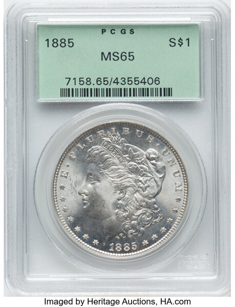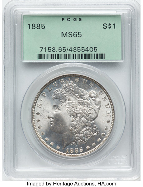 The 1885 Morgan dollar is an extremely common coin and is widely available in all circulated grades as well as uncirculated grades through MS66, above which this piece becomes scarce. It is especially tough in MS67 and in MS68 levels is exceptionally rare, though the handful of existing specimens in that grade range draw heavy bids from registry set collectors. PLs and DMPLs are much scarcer across the board than their typical MS counterparts but not impossibly so, as there are many survivors of each even into the MS65 territory. At MS66 and above they become rare.