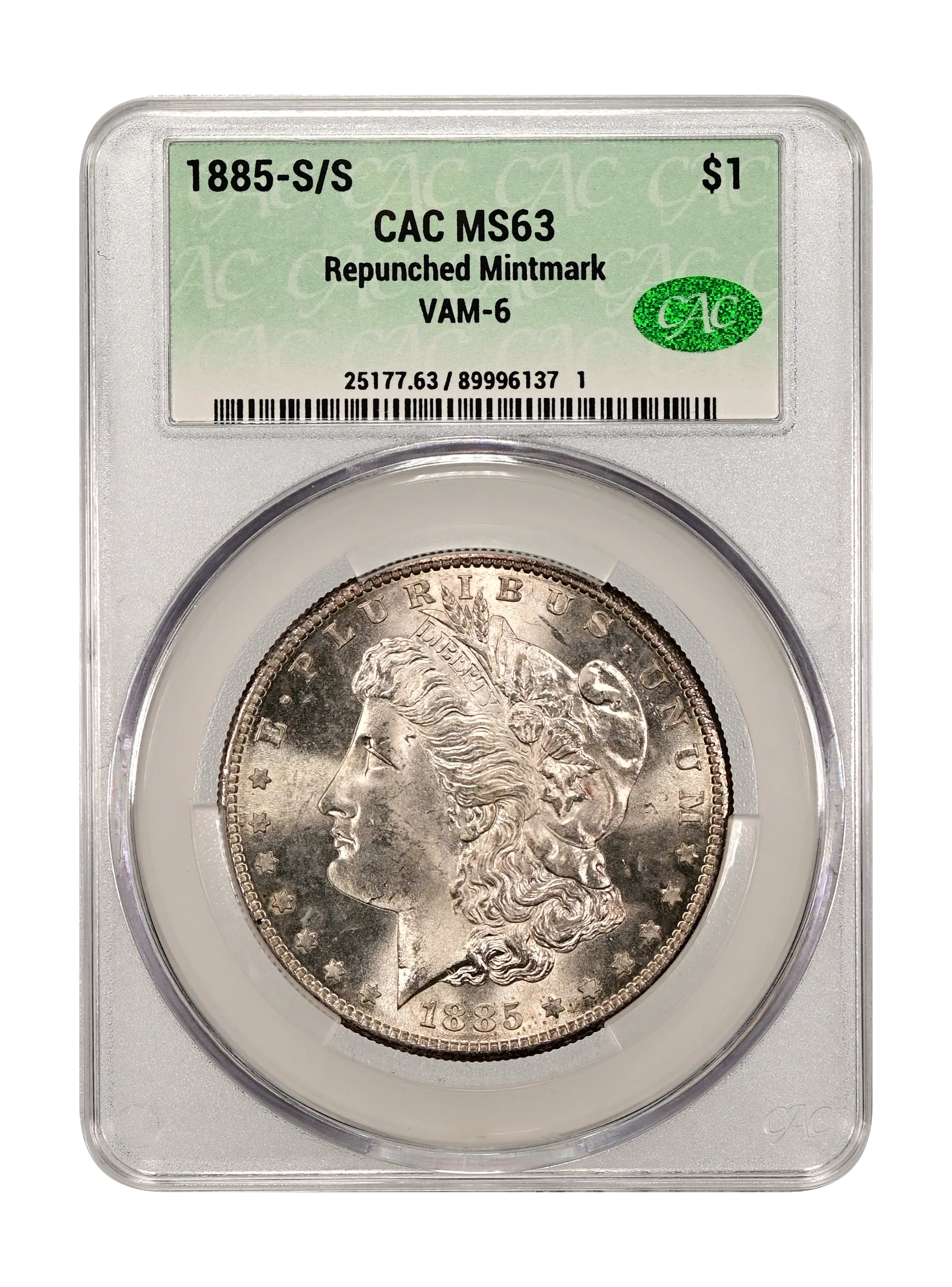 1885-S/S Repunched Mintmark $1 VAM-6 CAC MS63